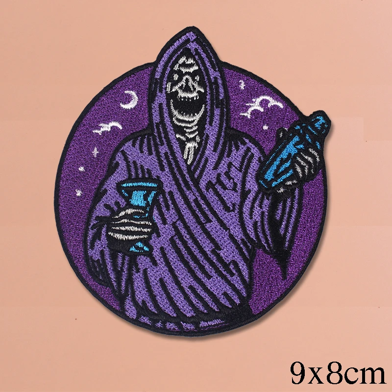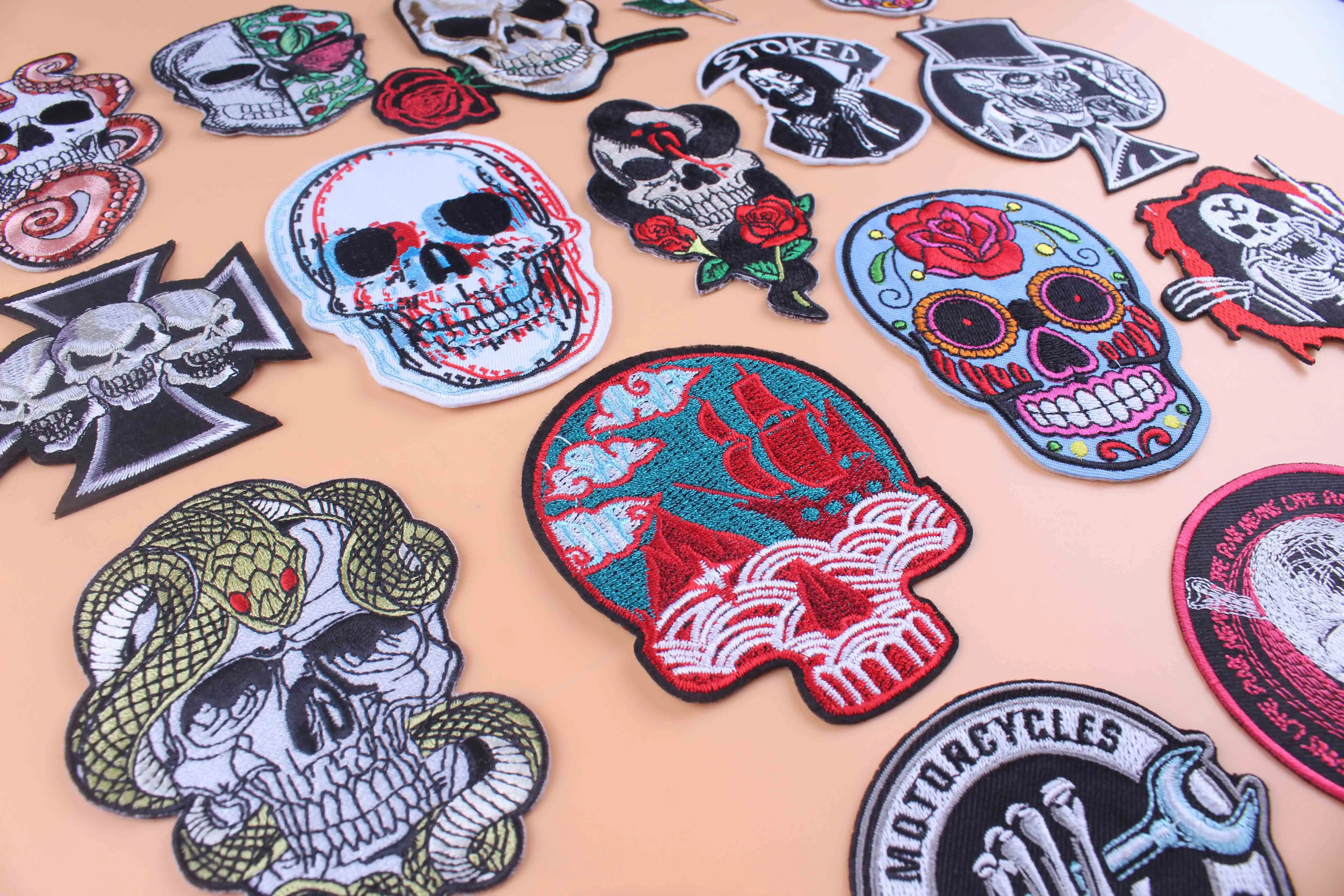 Pulaqi Rock Skull Flower Patch Embroidered Iron On Patches For Clothing Punk Style Stripes Stickers For Clothes Appliques Badges