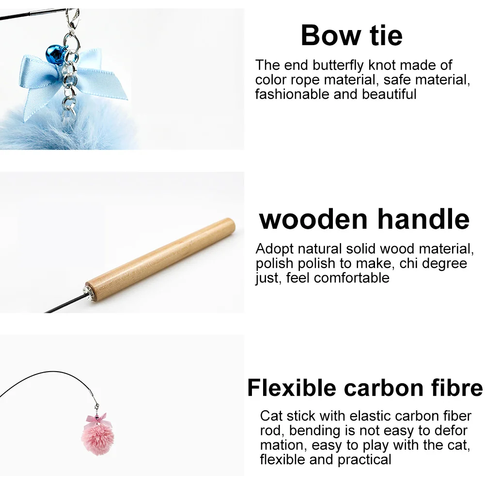Кошка помпон бант колокольчик интерактивный тизер Палка Удочка игра палочка игрушка