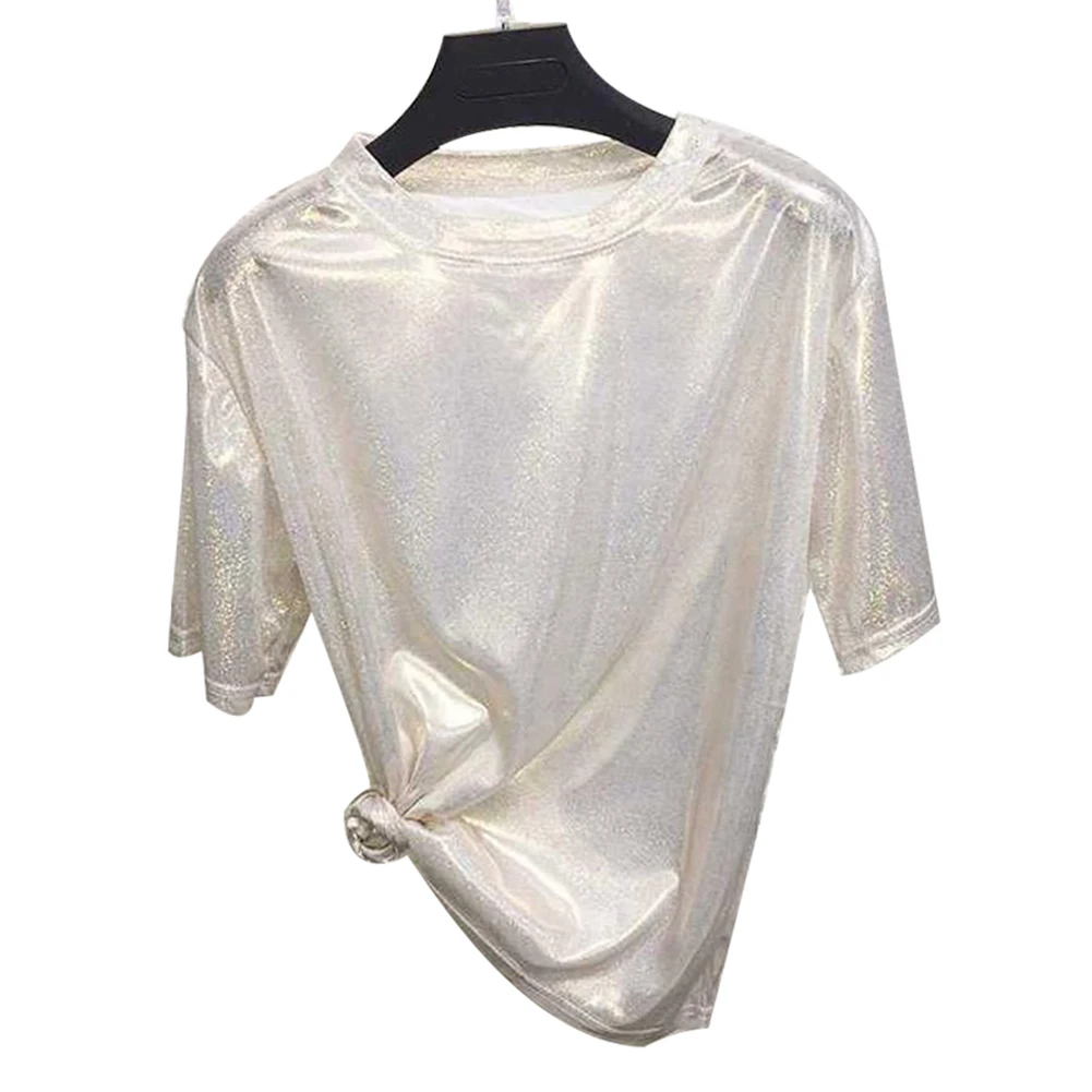 Летняя футболка в стиле ретро, стильные яркие шелковые женские топы, блестящая свободная футболка с коротким рукавом, сексуальная клубная Эстетическая женская блузка в стиле Харадзюку