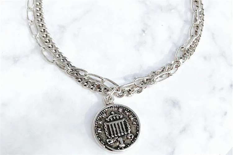 Бесплатная доставка двухслойная круглая монета королева ретро браслет цепочка на руку браслет для женщин ювелирные изделия лучший друг персонализированный подарок
