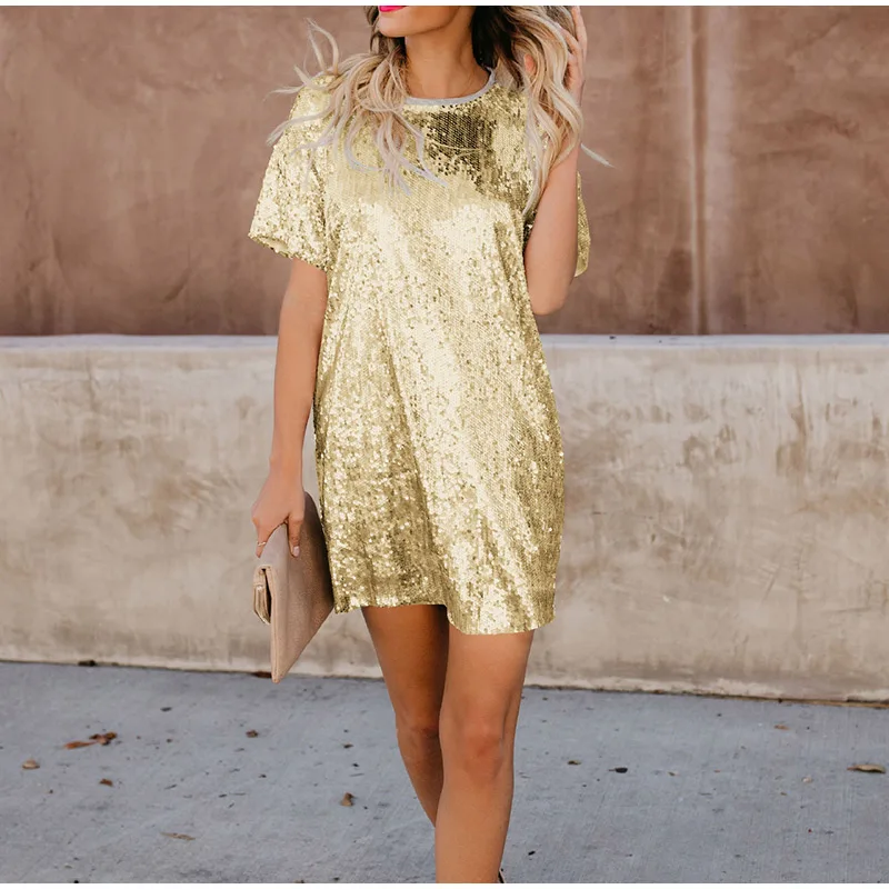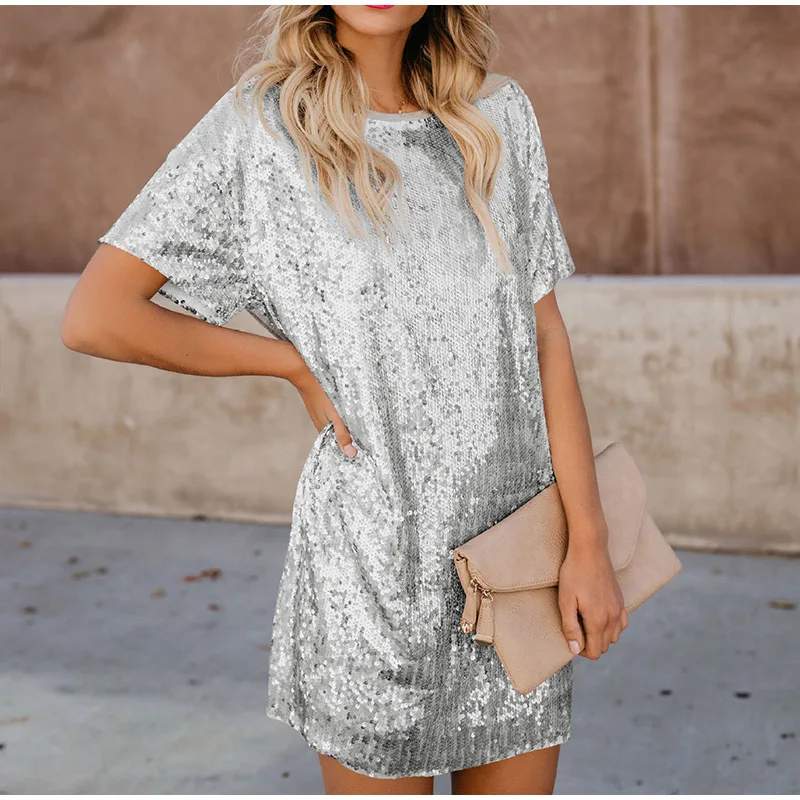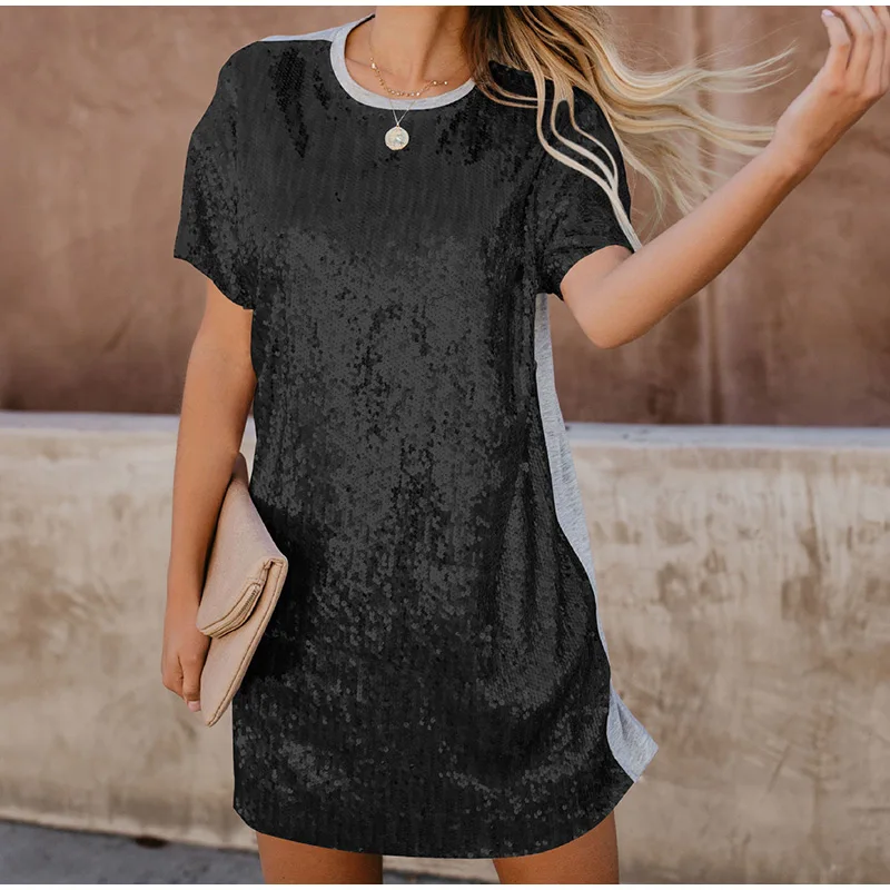 Summer shiny combined women mini dress straight O neck short sleeve Vestido Mujer 2020 Spring Fashion Casual chic dresses for women