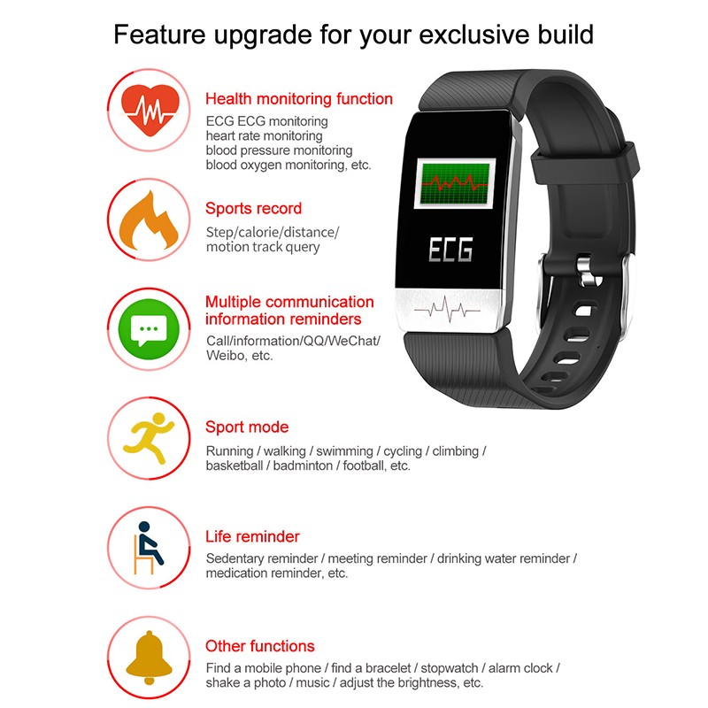T1 ECG смарт-браслет с пульсометром и монитором температуры тела Смарт-браслет Bluetooth Музыкальные напоминания о звонках для IOS Android F4