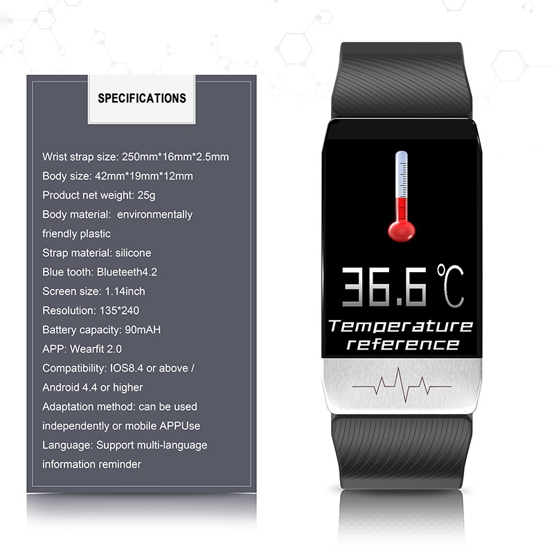 Описание Размер браслета: 251 мм * 18 мм * 2,5 мм Размер корпуса: 42 мм * 22 мм * 11 мм Вес: 28 г Экран дисплея: размер экрана 1,14 дюйма Разрешение: 135*240 Сенсорная Форма: одно касание Емкость: 90 мАч Материал устройства: пластиковый чехол для часов + нержавеющая сталь Корпус: пластик + нержавеющая сталь Застежка: нержавеющая сталь Ремешок: ТПУ Аппаратные параметры Тип процессора: Hs6620D Частота сердечных сокращений: нормальный Пульс SC7R30 RAM (случайный доступ к памяти):S RAM 128 Кб SFlash (память только для чтения):Flash 1M Внешняя вспышка: Вспышка 8 м Датчик ускорения: трехосный датчик Вибрация: двигатель SMT цилиндрический двигатель Bluetooth: встроенная антенна BT Интерфейс зарядного устройства Источник питания: USB Кнопка: сенсорная кнопка одно касание Android: системная версия 4,4 или выше IPhone: системная версия 8,4 или выше, iPhone 5S или выше Функции программного обеспечения Отображение времени: Поддержка Подсчет шагов: Поддержка Калории: Поддержка Расстояние: Поддержка Спортивный режим: Поддержка Поднимите руку на яркий экран: Поддержка Мониторинг сна: Поддержка Беговая дорожка: Поддержка Напоминание о входящем звонке: Поддержка Уведомление о сообщении: Поддержка Напоминание о сидячем положении: Поддержка Напоминание о сигнале: Поддержка Встряхните, чтобы сделать фото: Поддержка Поиск браслета: Поддержка Переключение циферблата: Поддержка Поддержка погоды Китайский и английский: Поддержка Управление музыкой: поддержка Регулировка яркости экрана: Поддержка Почасовое измерение: Поддержка WeChat Спорт: Поддержка Частота сердечных сокращений: Поддержка Температура тела: Поддержка Артериальное давление: Поддержка Кислород в крови: Поддержка ЭКГ: Поддержка Температура тела: Поддержка Здоровье iPhone: Поддержка Неделя здоровья: Поддержка Название Bluetooth: поддержка Язык: Поддержка Название приложения: Wearfit2.0 Измерение иммунитета: Поддержка Водонепроницаемость: Уровень водонепроницаемости IP67 Язык поддержки приложения Andriod: английский, чешский, немецкий, испанский, французский, итальянский, японский, корейский, португальский, русский, тайский, упрощенный китайский, традиционный китайский Ios: английский, китайский, традиционный китайский, японский, корейский, испанский, немецкий, французский, португальский, итальянский, русский, польский Язык поддержки приложения Andriod: английский, чешский, немецкий, испанский, французский, итальянский, японский, корейский, португальский, русский, тайский, упрощенный китайский, традиционный китайский Ios: английский, китайский, традиционный китайский, японский, корейский, испанский, немецкий, французский, португальский, итальянский, русский, польский