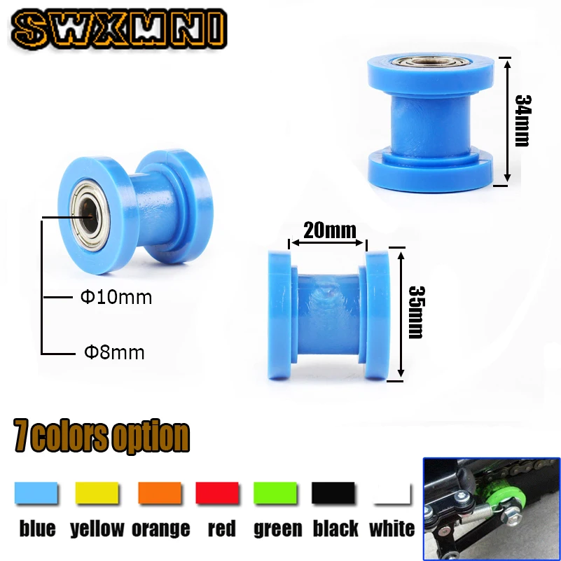Состояние: абсолютно новый Цвет: желтый, синий, темно-оранжевый, красный, зеленый, белый, черный Диафрагма: 8 мм, 10 мм Вес: 47 г/шт. (8 мм), 45 г/шт. (10 мм) Посылка включает в себя: 1 x Натяжной ролик для цепи
