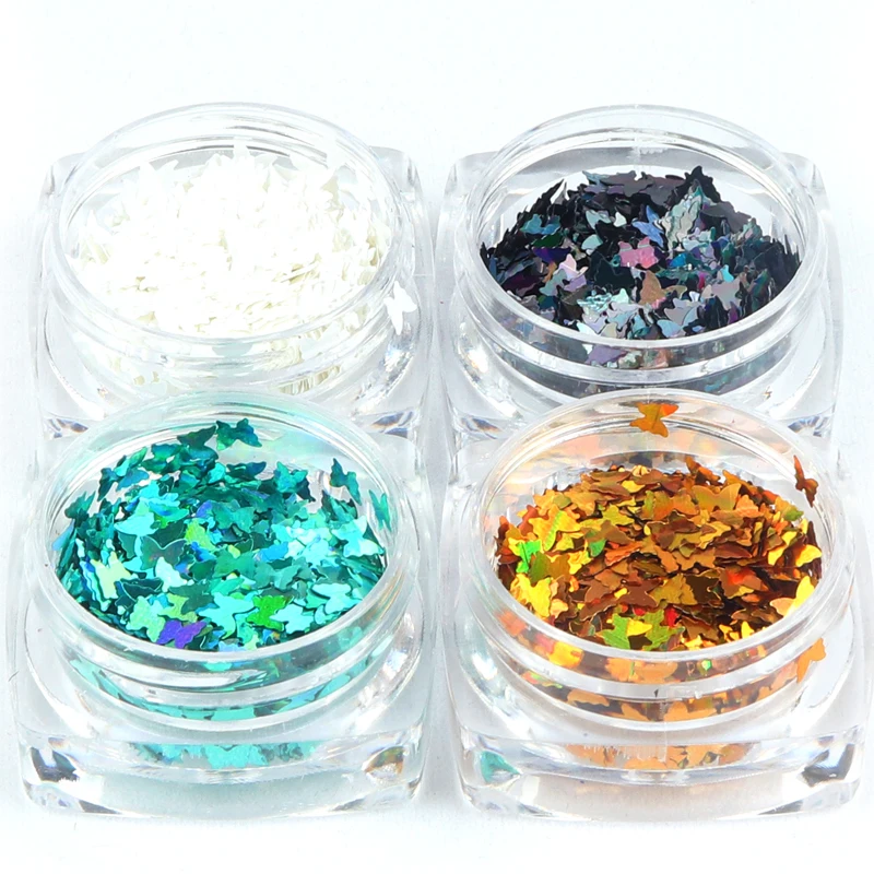 4 коробки/набор голографическая лазерная форма бабочки художественное оформление ногтей 3D Золотой Белый Зеленый Блестки Spangles полировальные аксессуары для ногтей