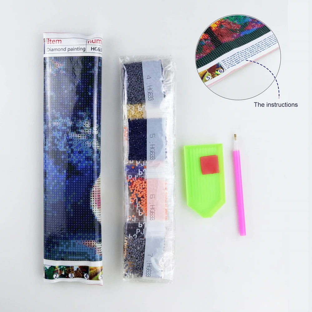 Посылка включает в себя: стразы, 1 * Холст, 1 * Набор инструментов «сделай сам» (лоток, ручка, грязь, маленькие OPP пакеты);
