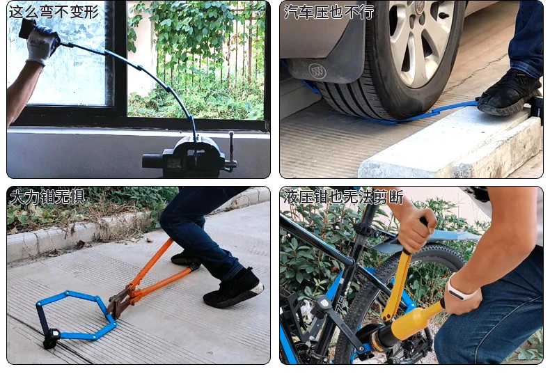 Бренд: ETOOK Название продукта: ET-490 складной замок Длина: S-75cm L-90cm Вес: S-917g L-1052g Толщина: 5 мм Материал: Закаленный Стальной сплав (с термообработкой) Цилиндр замка: Швейцарская Технология Ключ: медно-никелевый сплав Уровень безопасности 4 уровня (анти Профессиональный вор, долгий период в ночное время)