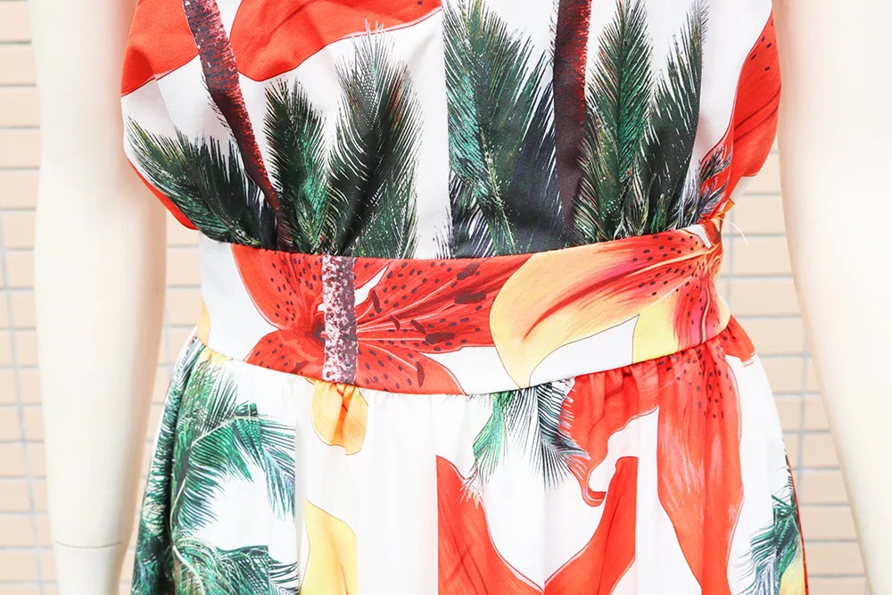 Платье женское в стиле бохо длинный пляжный сарафан с цветочным принтом пышными