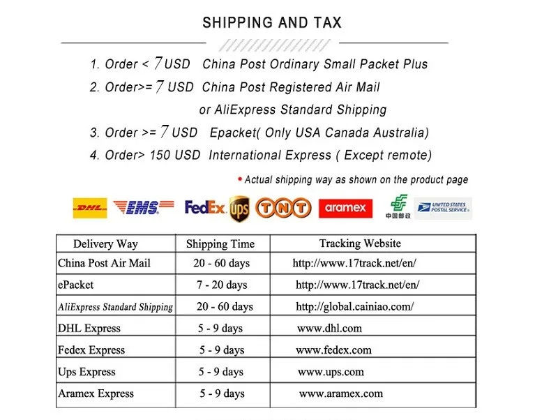1. Мы предоставляем поддержку дропшиппинг и агента для товаров, чтобы отправить вашим клиентам без каких-либо счетов-фактур или другой информации. Пожалуйста, выберите быстрые методы доставки, такие как E-packet и aliexpress Стандартная доставка.2. Почти все онлайн-продукты могут быть поставлены, вы можете разместить заказ напрямую. Иногда может отсутствовать на складе, если нет в наличии, мы свяжемся с Вами в течение 24 часов. Если мы не сможем получить ваш своевременный ответ в течение 48 часов, мы вышлем Вам товары с подобным товаром.3. Как правило, процесс подготовки нашей продукции составляет 4 рабочих дня. Информация о треке обычно поступает в течение 7-10 дней после того, как мы отправим товар.4. Если вы удовлетворены нашей продукцией, пожалуйста, не забудьте оставить нам отзывы 5 звезд вовремя, мы постараемся сделать все возможное, чтобы решить любую проблему. Спасибо за внимание!5. Если возникнут какие-либо проблемы, пожалуйста, свяжитесь с нами, прежде чем открыть спор или оставить нам отрицательный отзывы. Мы постараемся сделать все возможное, чтобы решить проблему.6. Вы можете связаться с нами, оставив сообщение на Aliexpres, e-mail,Whatapp,Skype,Wechat.