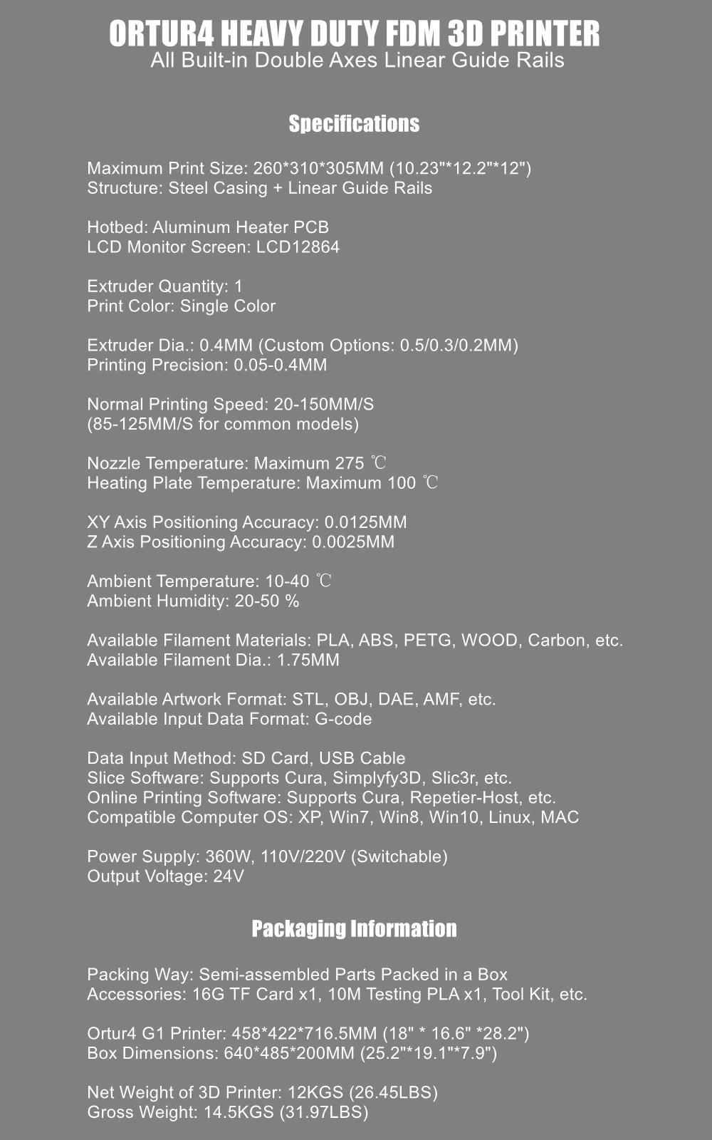● Принтер Ortur4 V1 является сверхпрочным FDM3D принтером с прочной конструкцией, качеством и надежностью, а принтер прост в использовании и долговечен.