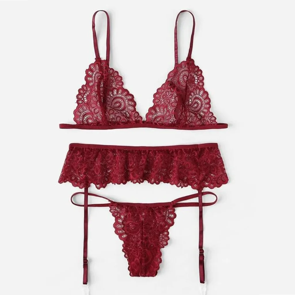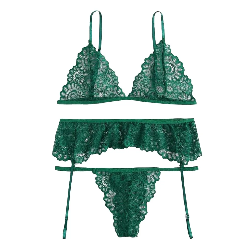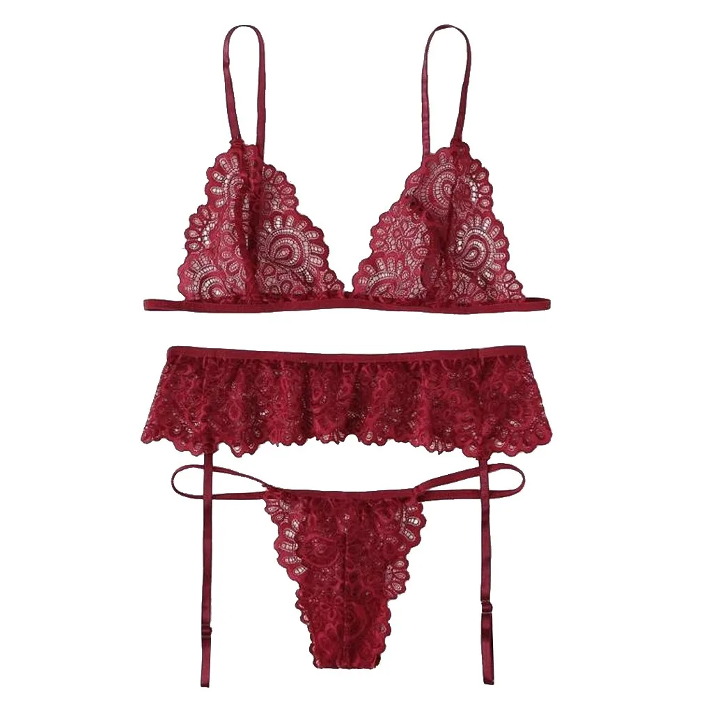 Новое дамское нижнее белье, беспроводной бюстгальтер, стринги с подвязкой, сексуальные кружевные пижамы, нижнее белье