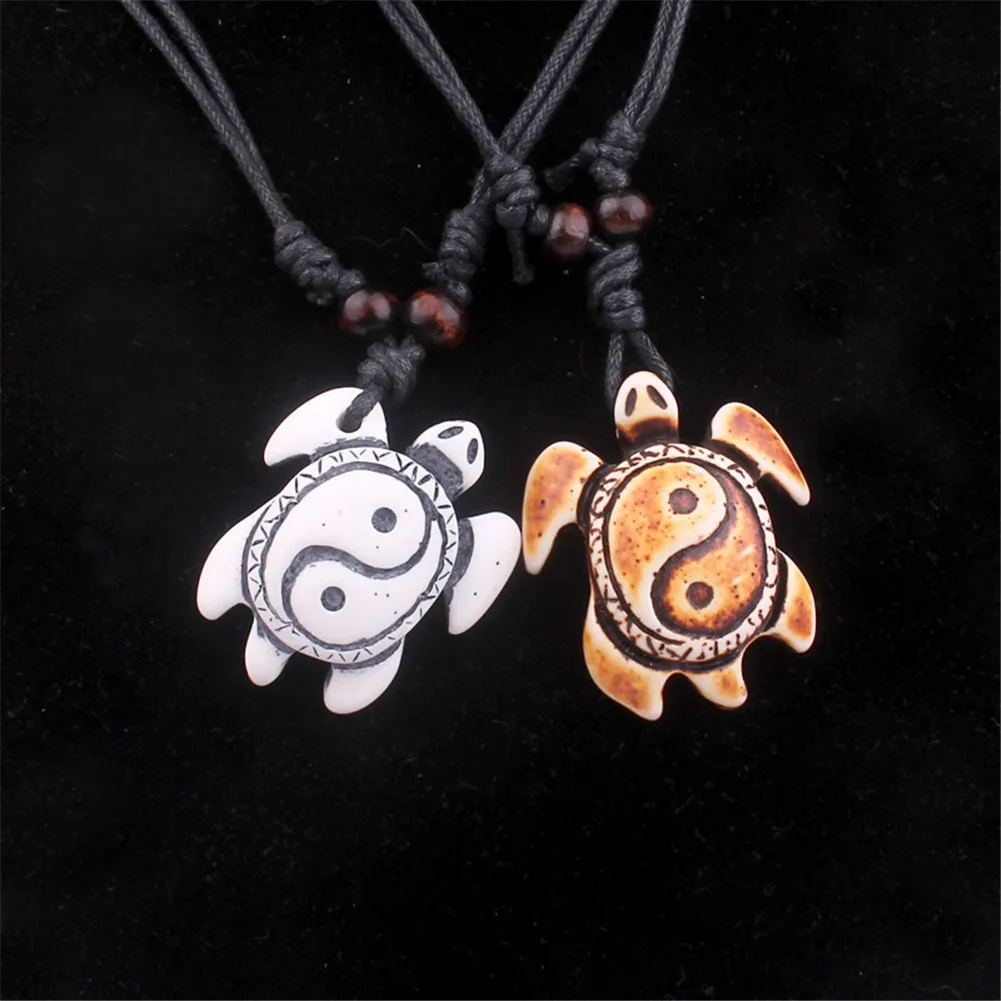 2 шт. Инь Янь ожерелье с черепашкой кулон Регулируемый Ретро Смола акрил Lucky Sea черепаховое ожерелье с восковой веревкой для женщин девочек 2 шт./компл.