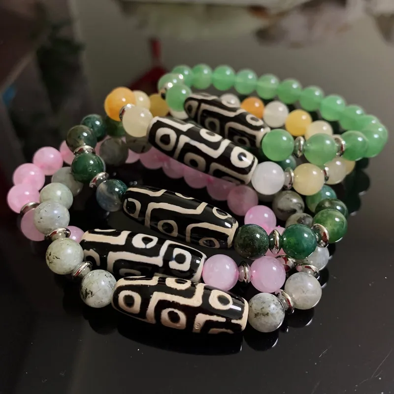 Женские браслеты из агата и Будды, Исцеляющие натуральные тибетские браслеты из агата с восьмиглазым кварцевым опалом и желтым кристаллом Лабрадорита в стиле ретро Материал камня: черный агат, натуральный агат Браслет; Розовый кварц, мох-Агат, топаз, зеленая авантюрин, морской опал, лабрадорит Металл: разделительные бусины из нержавеющей стали Длина: около 18 см/7 дюймов Размер камня: 8 мм и 10 мм, Агатовые Бусины, 30 мм, Агат Дзи. Dzi агат: Nine Eye Примечание: натуральный камень с различными венами и цветами, не может быть уверен, что все такие же, как на фотографии, пожалуйста, проверьте это перед тем, как разместить заказ, спасибо