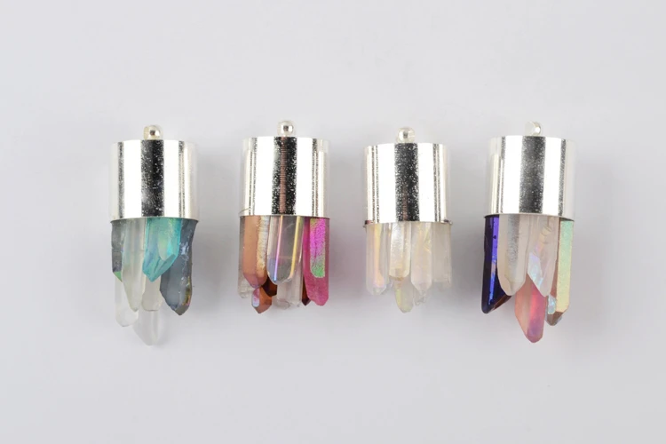 BOROSA 1/10 шт., натуральный серебристый цвет подвески с кристаллами Aura, подвески-кластеры, друза, кварцевые подвески для женщин, ожерелье, минералы, ювелирные изделия WX1602