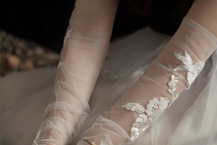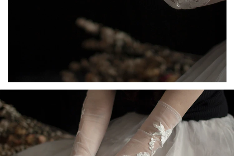 Перчатки Свадебные без пальцев с нежными бусинами и блестками цвет слоновой