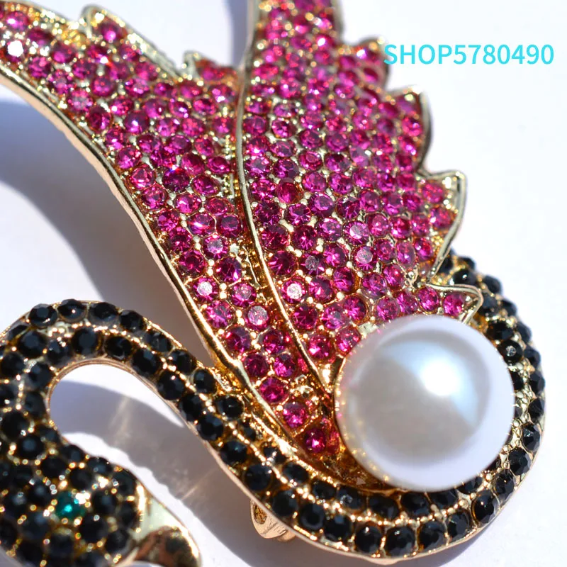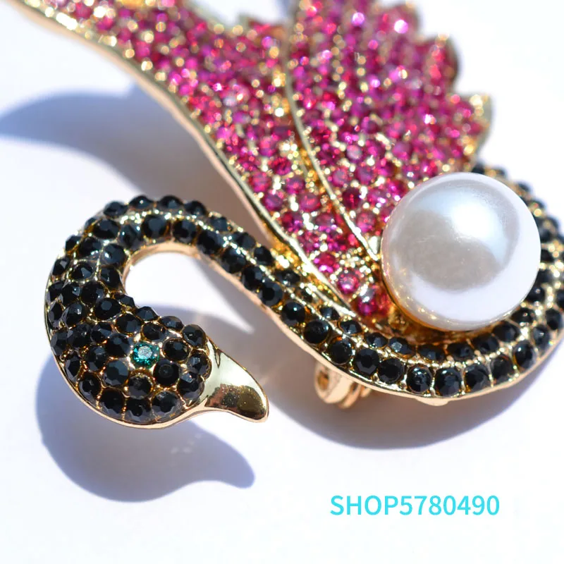 Женская Брошь в виде лебедя золотого цвета, элегантная жемчужная брошь в форме лебедя Для Стразы Размер Высота 45 мм Ширина 46 мм толщина 18 мм