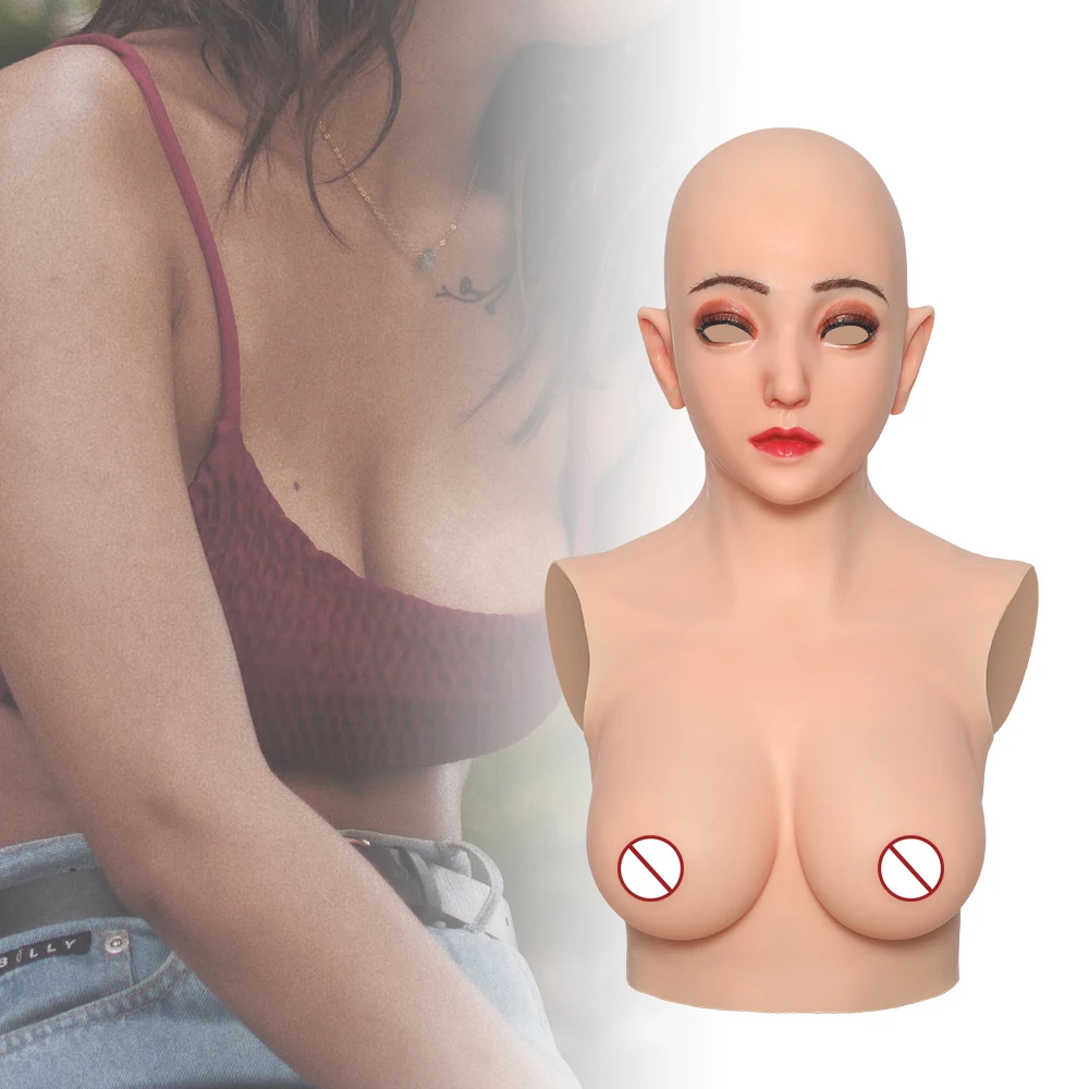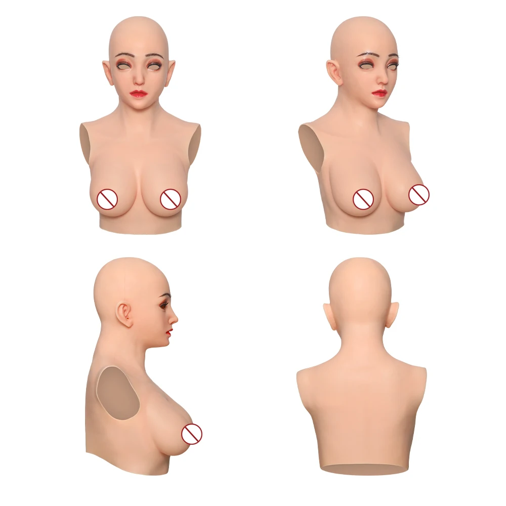 •Женская силиконовая маска Emily style с грудью, ЕстьЭлектронные чашки;Хлопковое наполнение и силиконовый гель. Изделия мягкие, более эластичные, с настоящей нежной текстурой кожи. Маски на груди, более скрытые, перекрещивающиеся от головы до груди. Материал более дышащий. С прожилкой крови на коже и груди более упругой, изменение обвисания груди и внешнего расширения, более реалистичные соски и тонкий макияж.