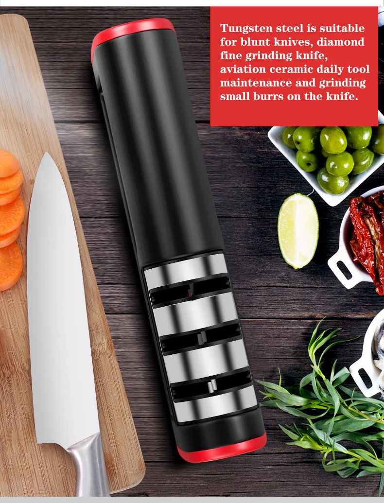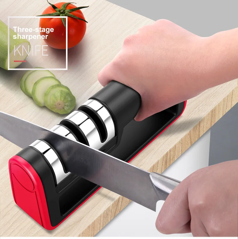 Ручная точилка для ножей 3 ступенчатая с всасывающим основанием прямого
