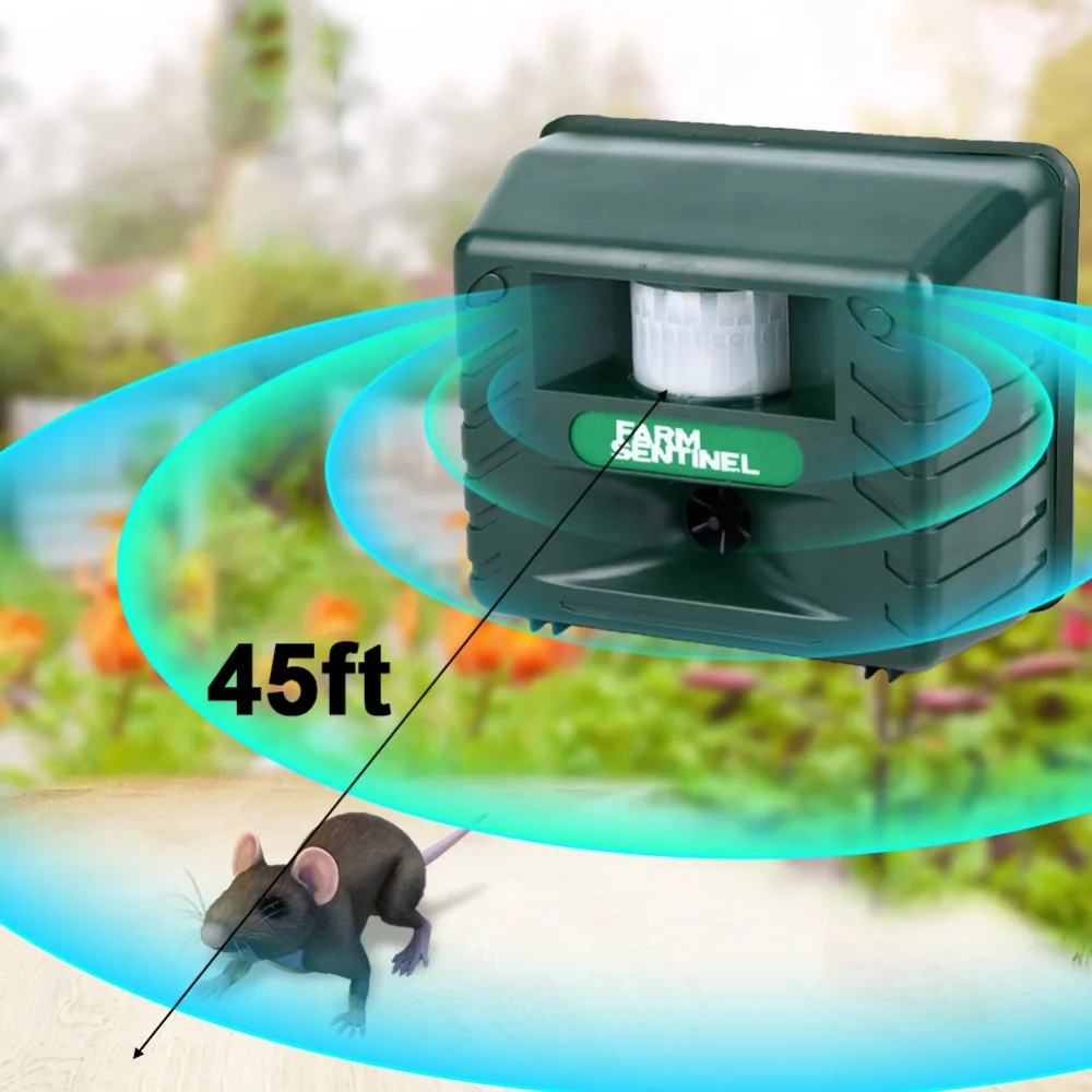 Особенности:1. Он использует ультра звуковую технологию, звуковую сигнализацию/помехи и вспышку, чтобы изгнать вредителей. Это экологически чистый и гарантированно безвредный для человека, питомца. Легко избавиться от всех типов захватчиков животных в вашем саду. Он очень эффективен в отпугивании кошек, собак, оленей, птиц, skunks, мышей, Лис, енотов и т. д.2. Мигающий светильник и пугающие тени сочетаются с ультразвуковой частотой пирсинга и дополнительным звуком хищника орла, чтобы эффективно отпугивать вредителей.3. Используйте его на открытом воздухе, чтобы избавить ваш двор от кошек, енотов, Скунсов, оленей, лисиц и летучих мышей. Ультразвуковой звук работает днем, а ночью у вас есть дополнительная защита мигающего стробоскопа, что особенно тревожит животных, которые бродят после темноты. Ночью, Ночные Глаза животных становятся расширенными и их чувства усиливаются. Они не хотят, чтобы их обнаружили, поскольку они отслеживают свою добычу, что делает стробоскоп особенно эффективным для побега их.Функция:1. Оригинальный размер-ультразвуковой Толкатель для вредителей.2. Регулируемая Ультразвуковая частота для борьбы с вредителями.3. Инфракрасный датчик движения.4. Дополнительное оповещение хищника (посмотрите на него, работающего на медведе).5. Устойчивость к погодным условиям.6. Используйте аккумулятор или адаптер переменного тока (не включая аккумулятор).7. Интеллектуальная система питания, простая в установкеХарактеристики:Материал: АБС-пластикМощность: 3,6 WВилка: США/ЕС/ВеликобританияНапряжение: 110-240 ВРазмер изделия: 16,8*8,3*13,6 смРазмер упаковочной коробки: 25*19*10 смЕсть сигнал тревоги, Нет вспышки, нет пульта дистанционного управленияПосылка:1 * Отпугиватель мыши1 * Разъем питания1 * Руководство по эксплуатации