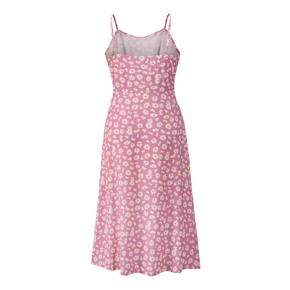 Платье женское длинное шифоновое с круглым вырезом и цветочным принтом | Женская