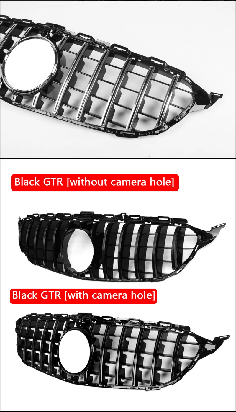 Название: GTR Гоночный гриль Материал: АБС-пластик Цвет: яркий черный Применимые модели: для Mercedes-Benz C-Class W205 AMG/GTR 2015-2018