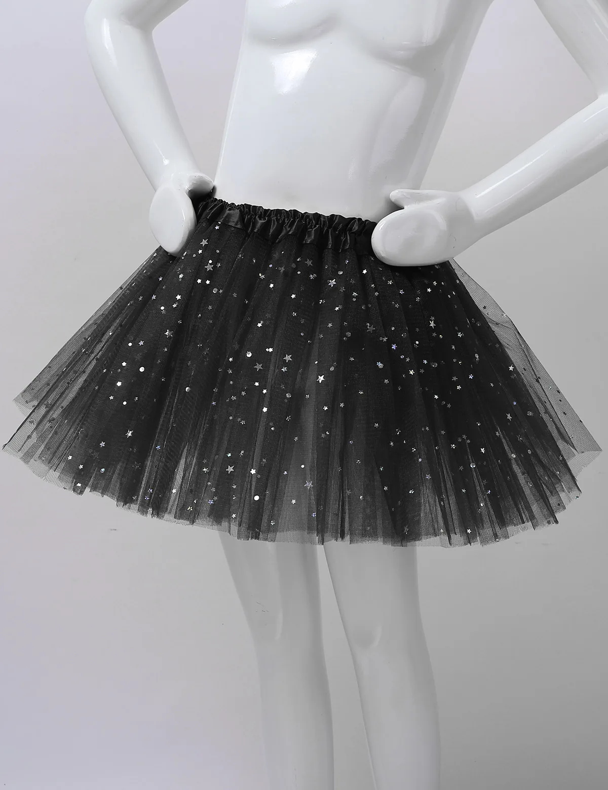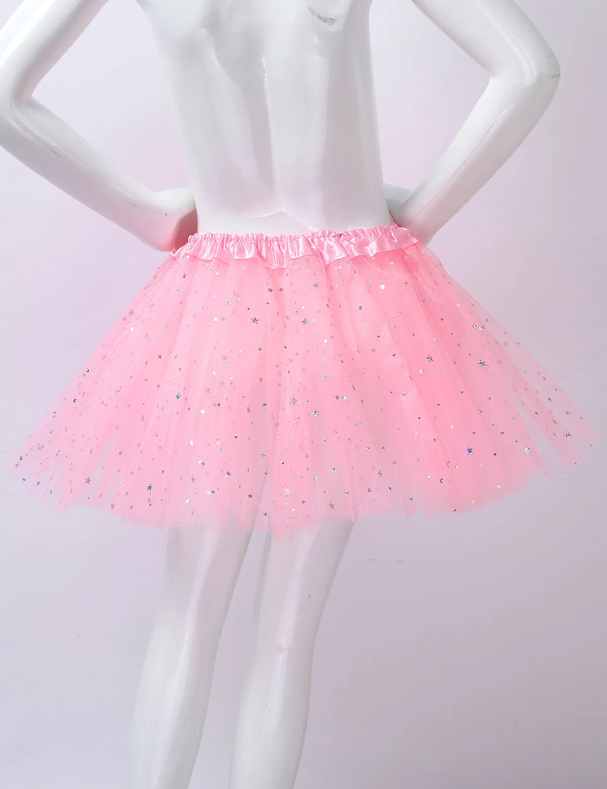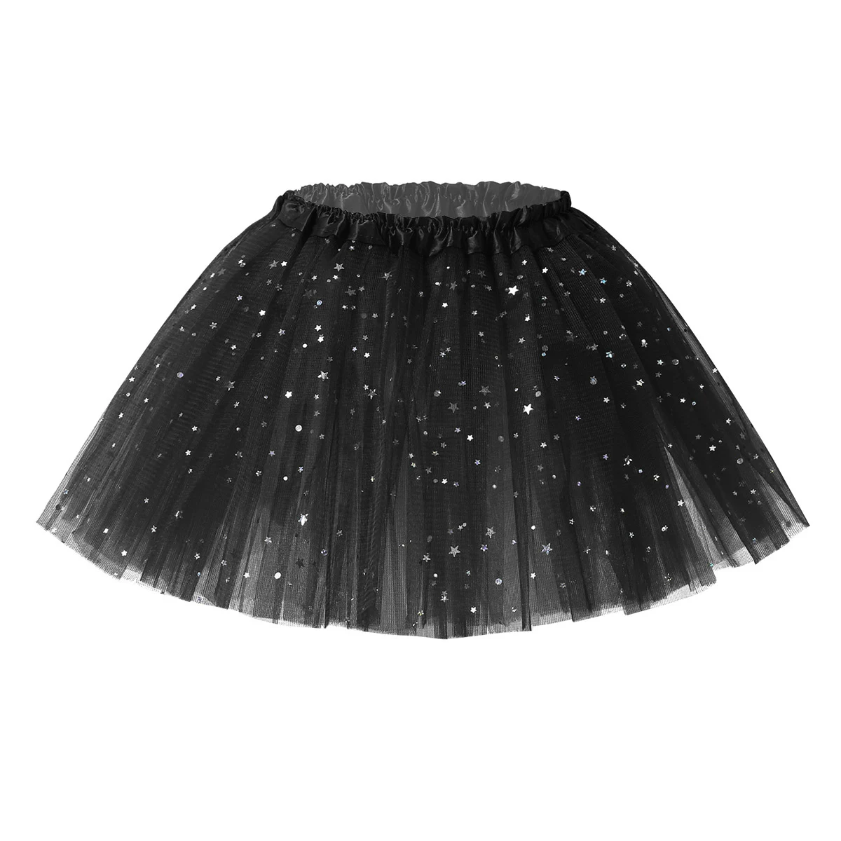 Детская балетная юбка для девочек; Многослойная детская фатиновая юбка-пачка с блестками и блестящими звездами для балета и танцев