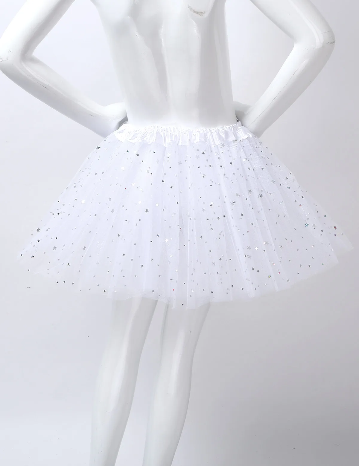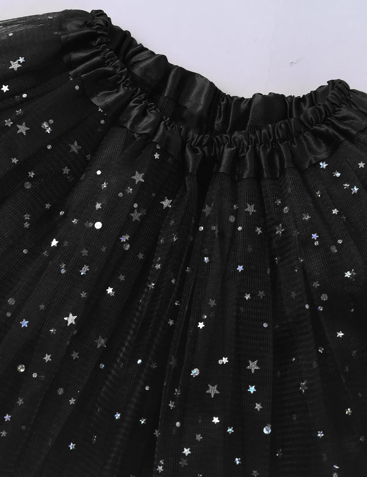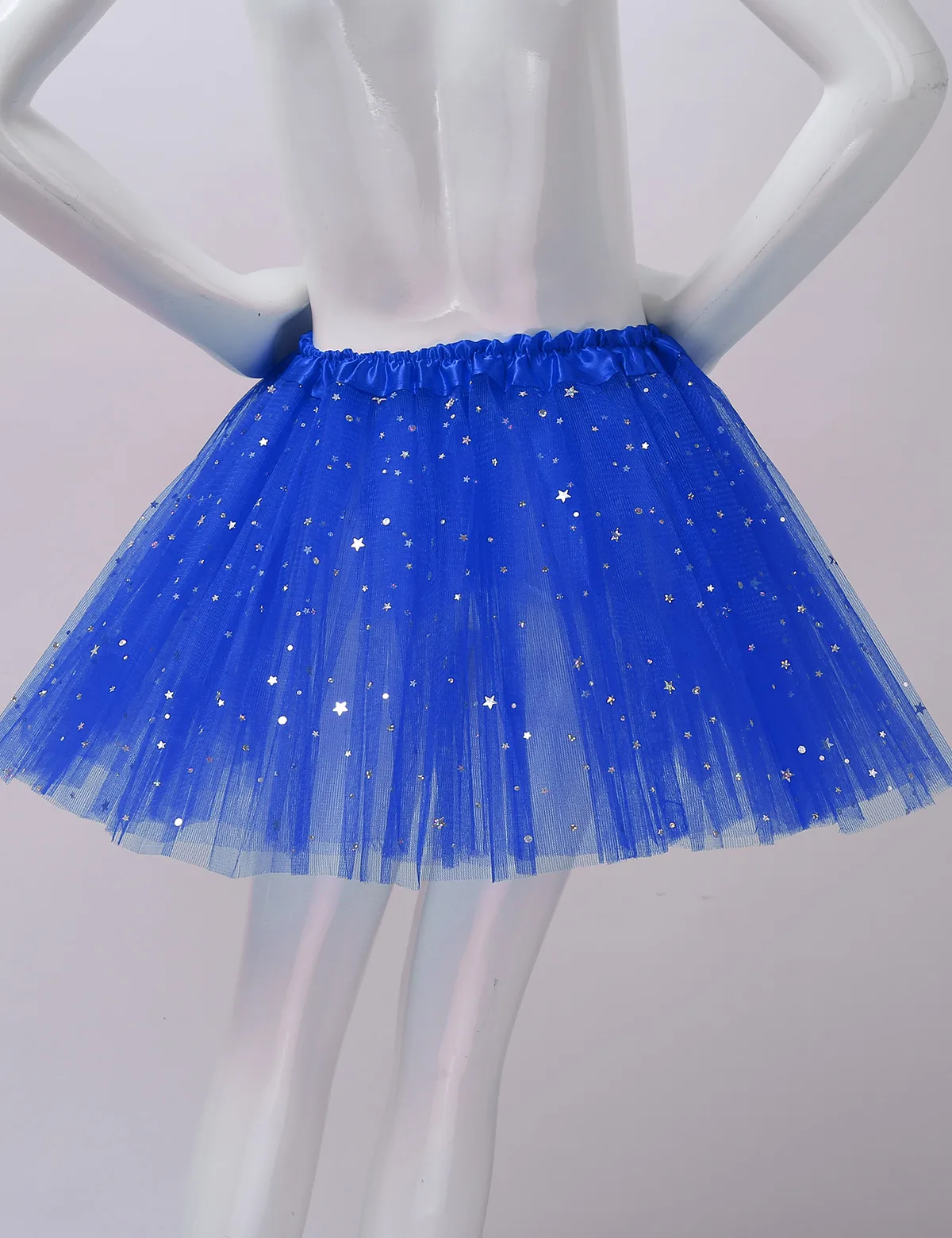 Детская балетная юбка для девочек; Многослойная детская фатиновая юбка-пачка с блестками и блестящими звездами для балета и танцев
