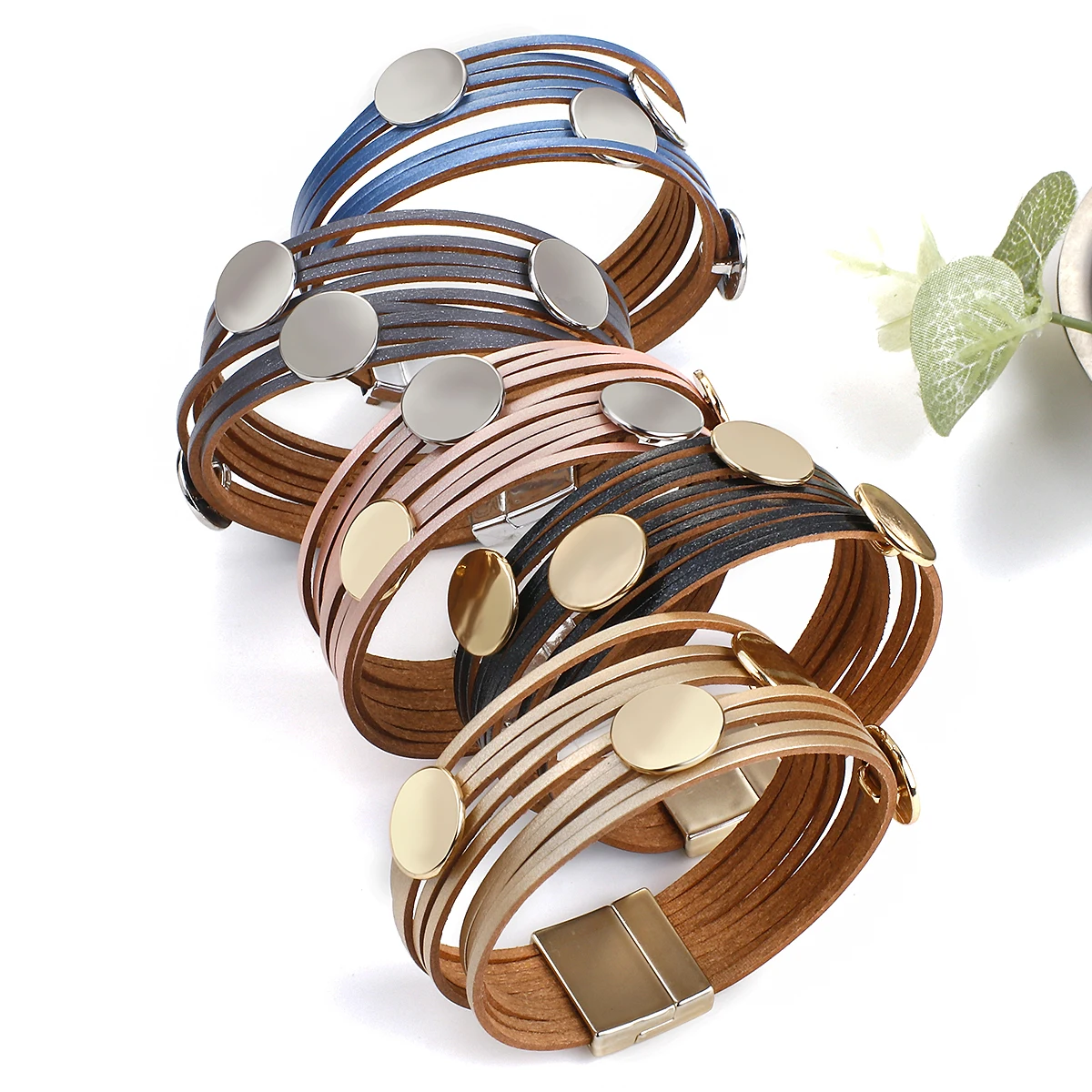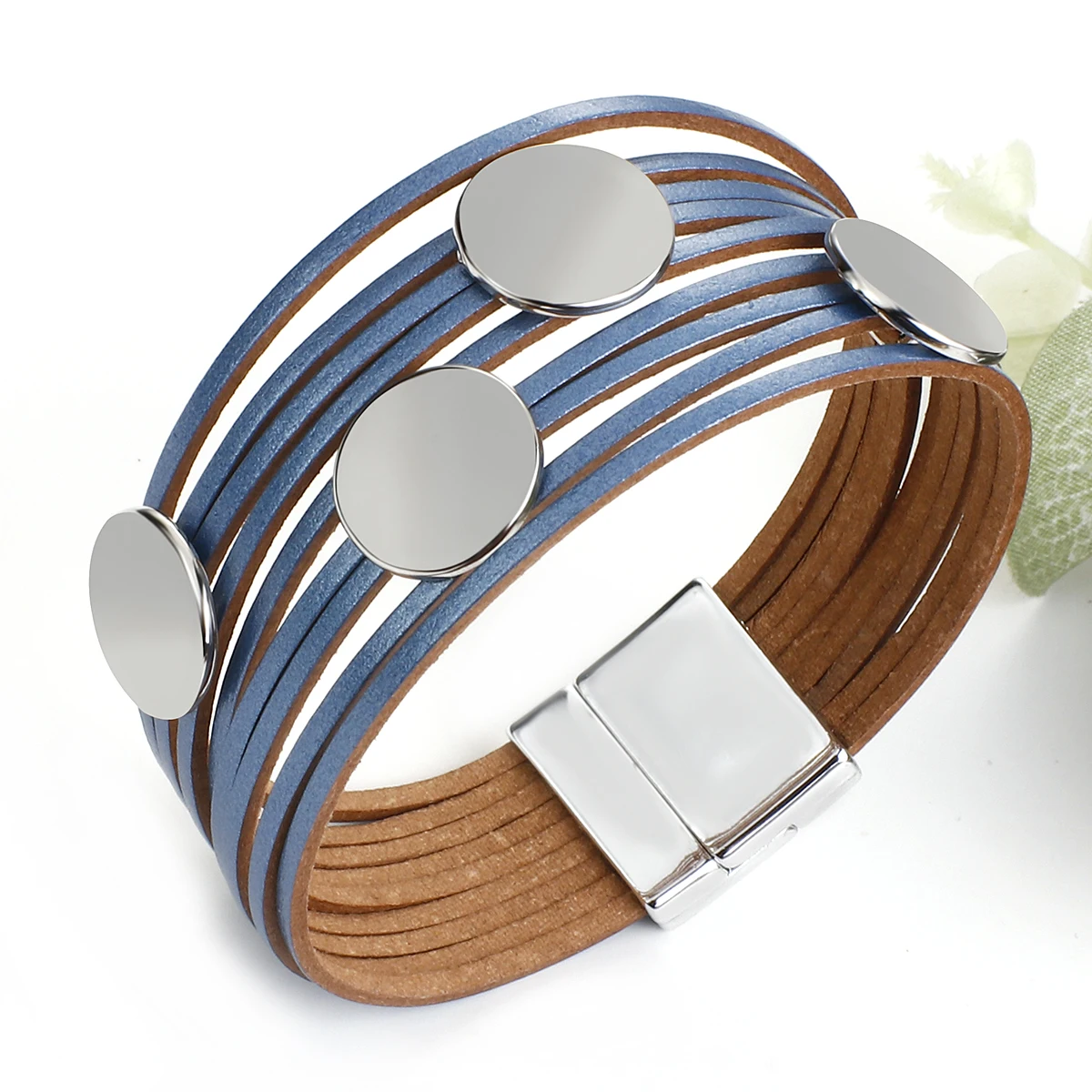 Товар:Женские многослойные кожаные браслеты ALLYES, 4 круглых шарма с блестками, тонкий браслет, модные ювелирные изделия для пары