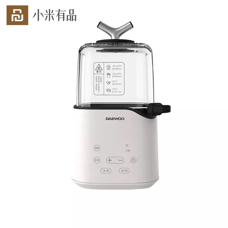 Youpin Daewoo K3 воздушная фритюрница электрическая без масла Интеллектуальная Мини 3D технология жареного воздуха один щелчок переключатель гриля Параметры продукта Название продукта: Воздушная фритюрница Номинальное напряжение: 220 В Время: 120 минут Вес нетто: 125 г Модель продукта: K3 Мощность: 850 Вт Емкость корзины: 2,35 л Размер продукта: 190*190*330 мм Аксессуары: пустая сковорода, противень для выпечки, крышка из боросиликатного стекла