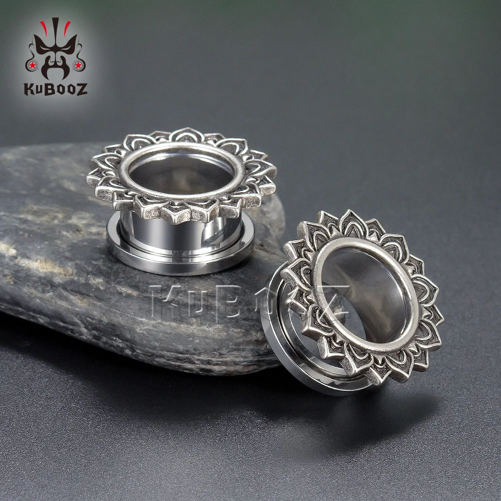 Kubooz, новейший дизайн, нержавеющая сталь, золотой цветок, узор, затычки для ушей, туннели, ювелирные изделия для тела, калибры для пирсинга, расширители для женщин и мужчин