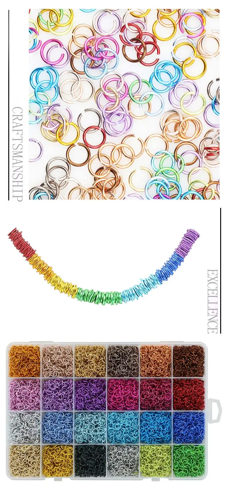 Количество колец: около 300 шт каждого цвета, около 7200 шт в общей сложности. Потому что наше открытое алюминиевое кольцо мягкое, его можно открыть вручную. Если вам нужно использовать инструменты, вам нужно только аккуратно открыть кости."