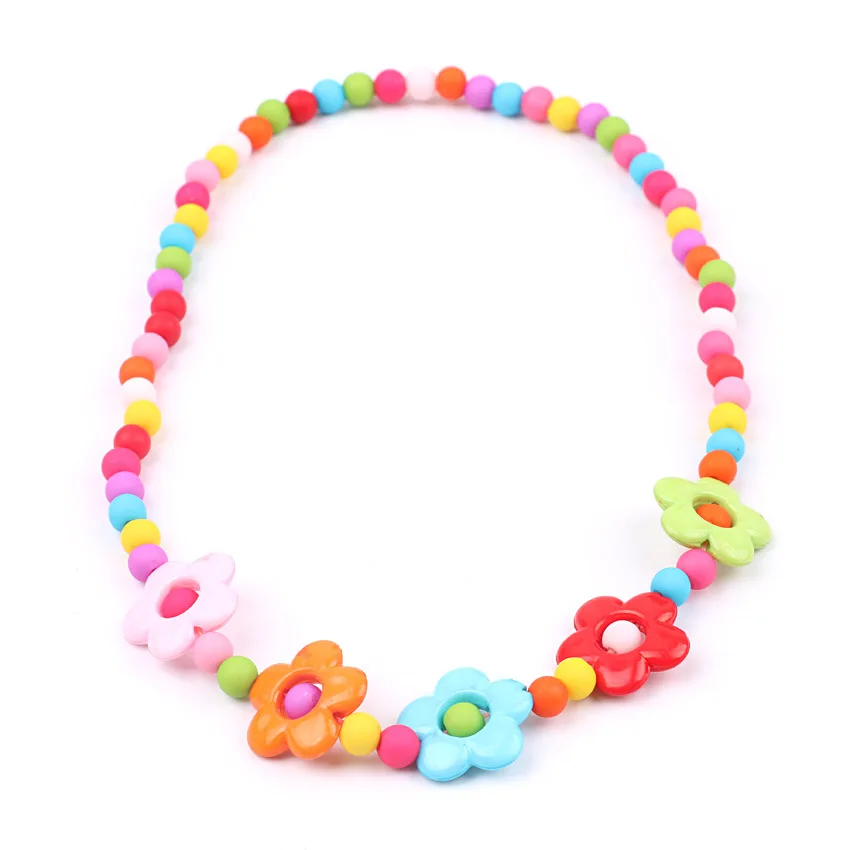Акриловые бусы ожерелье цветок Strand браслет дети набор ювелирных изделий для девочек конфеты разноцветный Детский девушка ювелирные изделия День рождения
