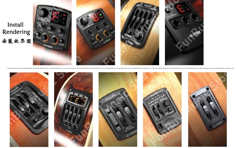 GT-6 is a 3 Band EQ with built-in highly accurate chromatic tuner. It has phase,reverb,delay,chrous and wide effects. The compact size makes it easy to install into a guitar and the visible portion is only 52mmx