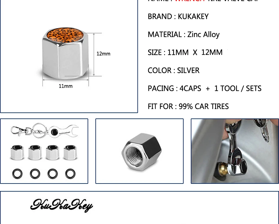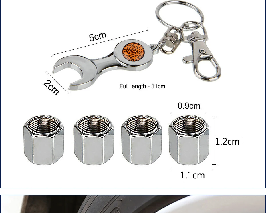 Особенности: Материал: нержавеющая сталь Размер: 11*11 мм Вес нетто: 20 г Количество: 4 шт./компл. Цвет: черный, серебристый Описание: * 100% новый и высокое качество * Защитные автомобильные колпачки вентиля шины помогают предотвратить утечку, грязь и другие Объекты от поврежденных ядер. * Легко установить, только винты на шток клапана шины. * Универсальный подходит для всех автомобилей, мотоциклов, велосипедов и т. д. * Изготовлен из металлического материала. Постоянный, устойчивый к выцветанию водонепроницаемый и устойчивый к царапинам. Посылка: 4 колпачка клапана + 1 брелок в виде гаечного ключа