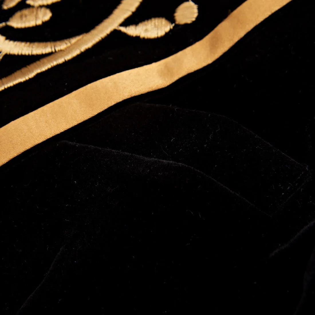 1, бархатная ткань хорошего качества. Вышивка с компьютерным позиционированием золотого цвета. Модный трендовый облегающий дизайн.