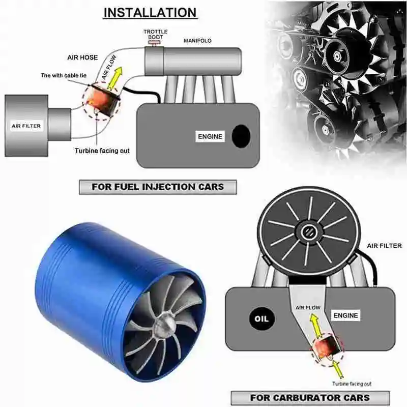 1 х новое супер зарядное устройство двойной Турбокомпрессор воздухозаборник экономии топлива турбо зарядное устройство вентилятор