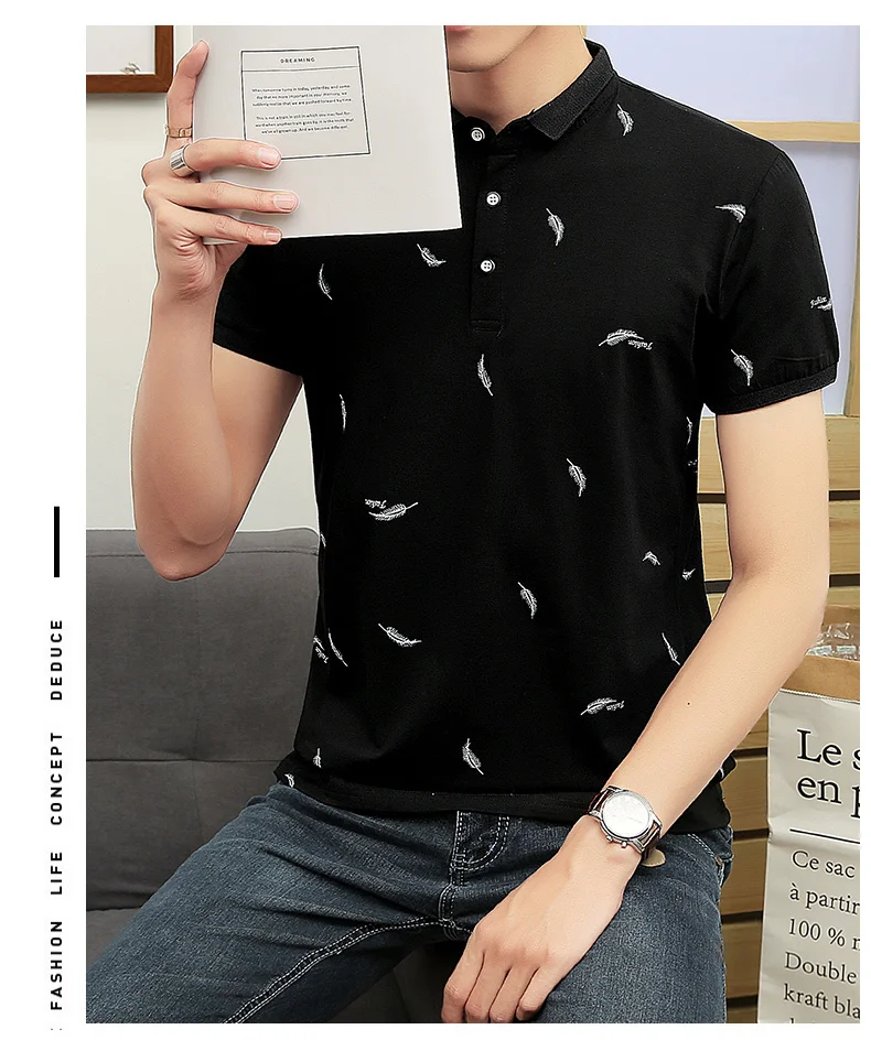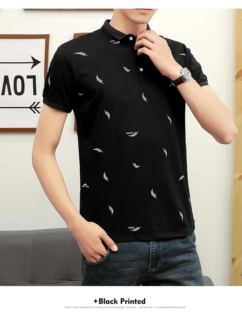 Мужская хлопковая рубашка-поло черная Повседневная с длинными рукавами и