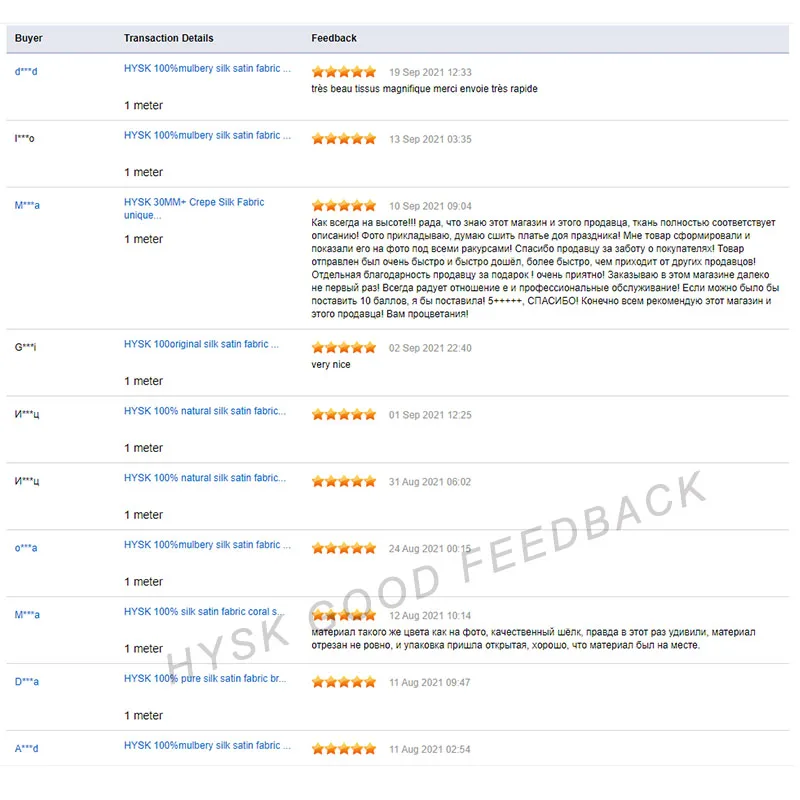 -- HYSK silk Co., Ltd. расположена в Гуанчжоу. Основной продукцией являются ручная печать или твердые шелковые атласные ткани и шелк жоржет ткани.