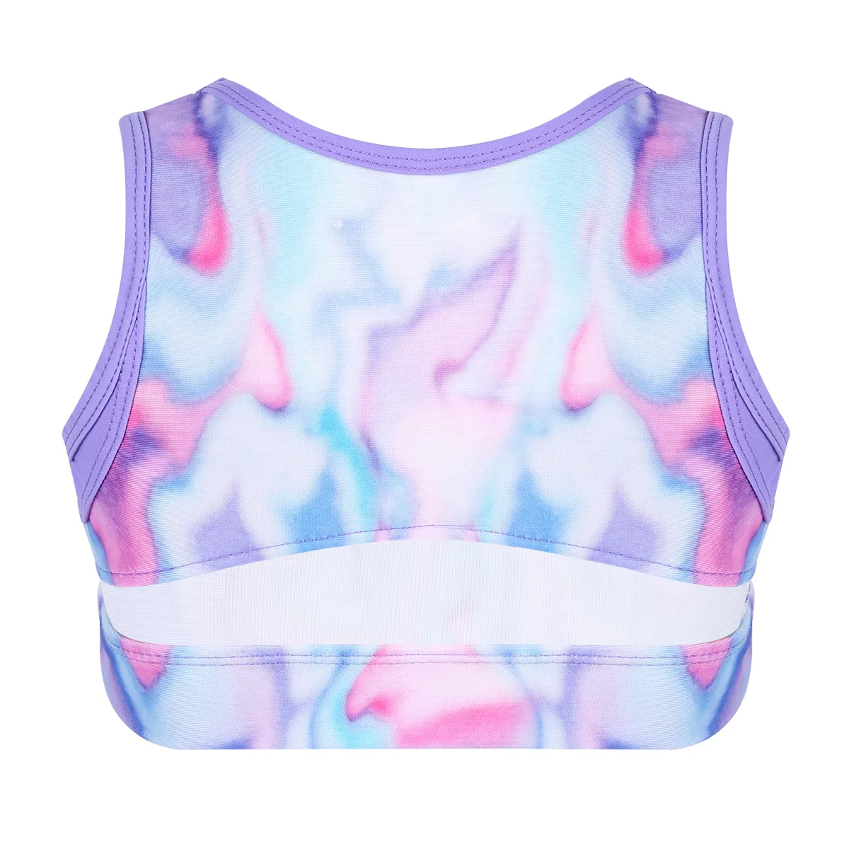 Укороченный топ без рукавов с круглым вырезом. Красивый дизайн с галстуком-краской. Застежка на застежке, зауженная посадка.