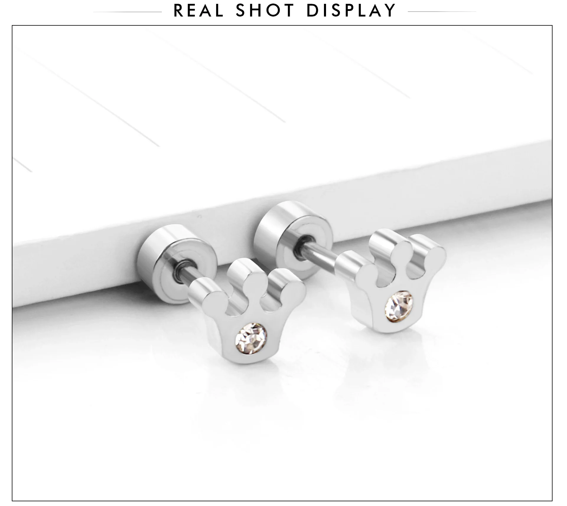 ASONSTEEL элегантные серьги-гвоздики в виде короны с фианитом из нержавеющей стали для женщин и девушек, ювелирные аксессуары