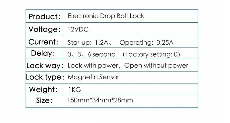 Этот Дверной замок специально разработан из прочного материала. Он может защитить ваш дом или бизнес-магазины. Низкий рабочий и Резервный ток. Особенно подходит для стеклянных дверей. Отличный выбор для вас.