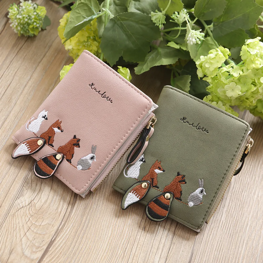 Милый короткий кошелек с вышивкой животных; Модный кошелек из искусственной кожи с застежкой на молнии; Мини-Держатель Для монет; Милый детский кошелек; Держатель для карт