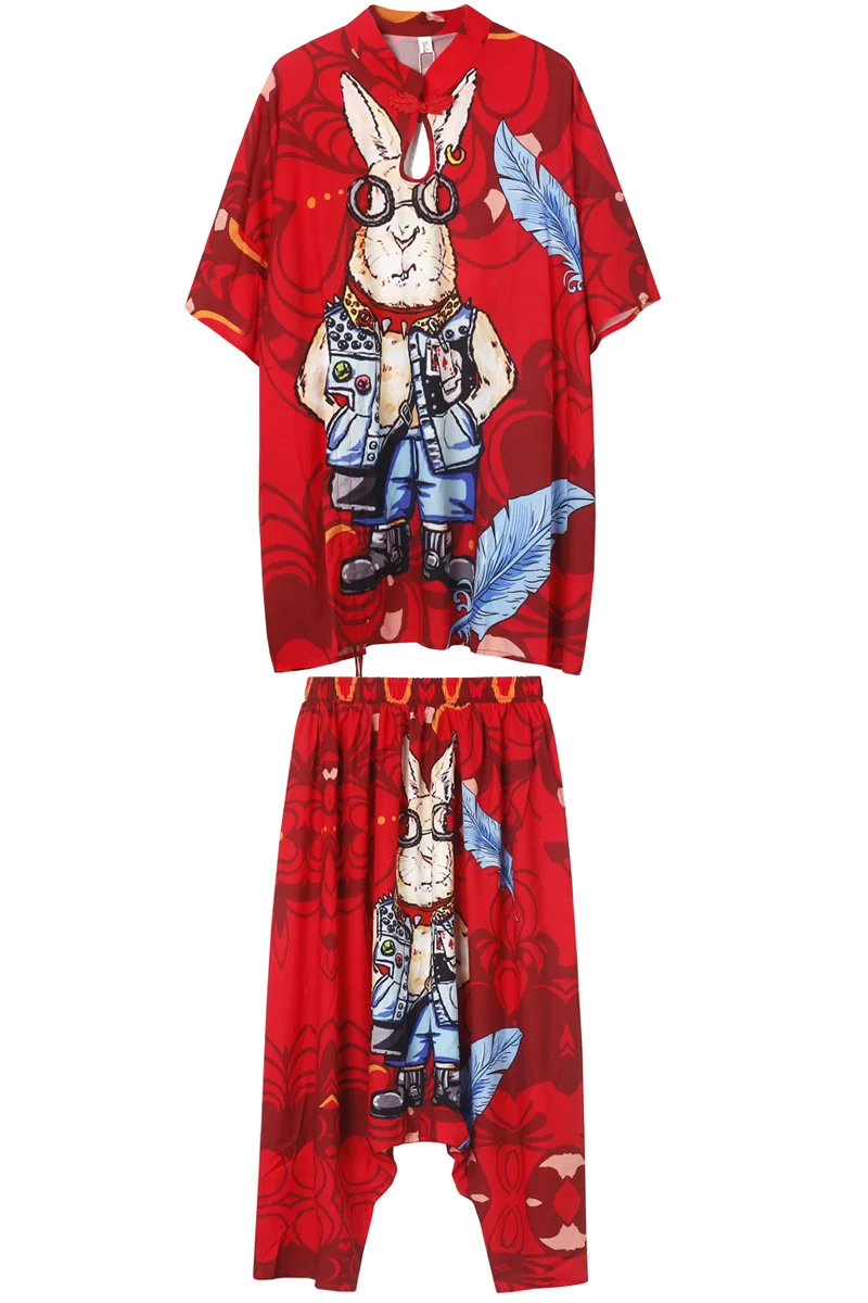 Для женщин Двойка набор печати Топы корректирующие с короткими принт Брюки для