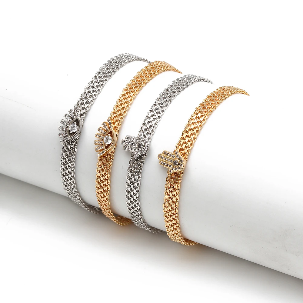 Lucky Eye Fatima Hamsa Hand Heart Evil Eye Bracelet Gold Silver Color Chain Bracelet Adjustable for Women Girls Jewelry BD197