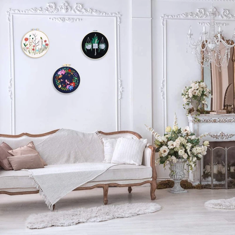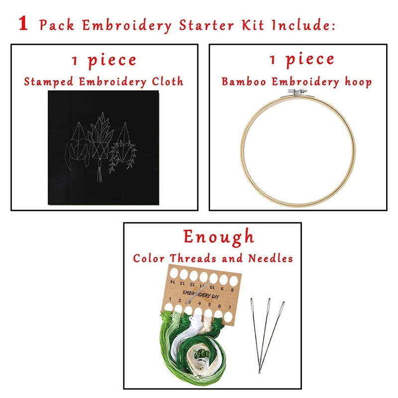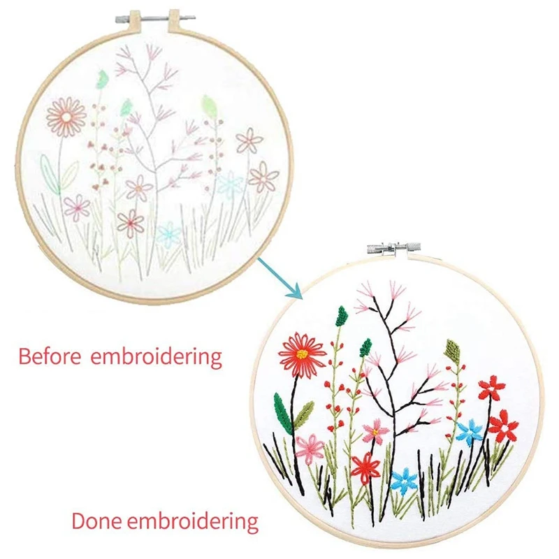 На ткани есть цветной узор, который поможет вам начать работу. И рисунок можно стирать после завершения.
