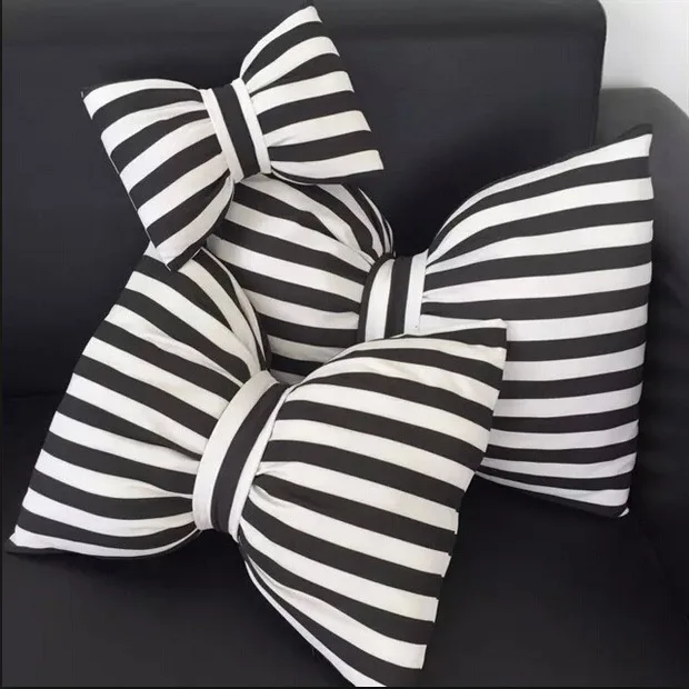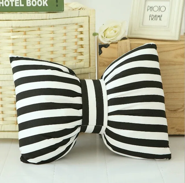 Подушка с бантом в черно-белую полоску, фото реквизит, милая Корейская Подушка для украшения дома, диван-кровать, Декор, задняя подушка, подарок для девочек
