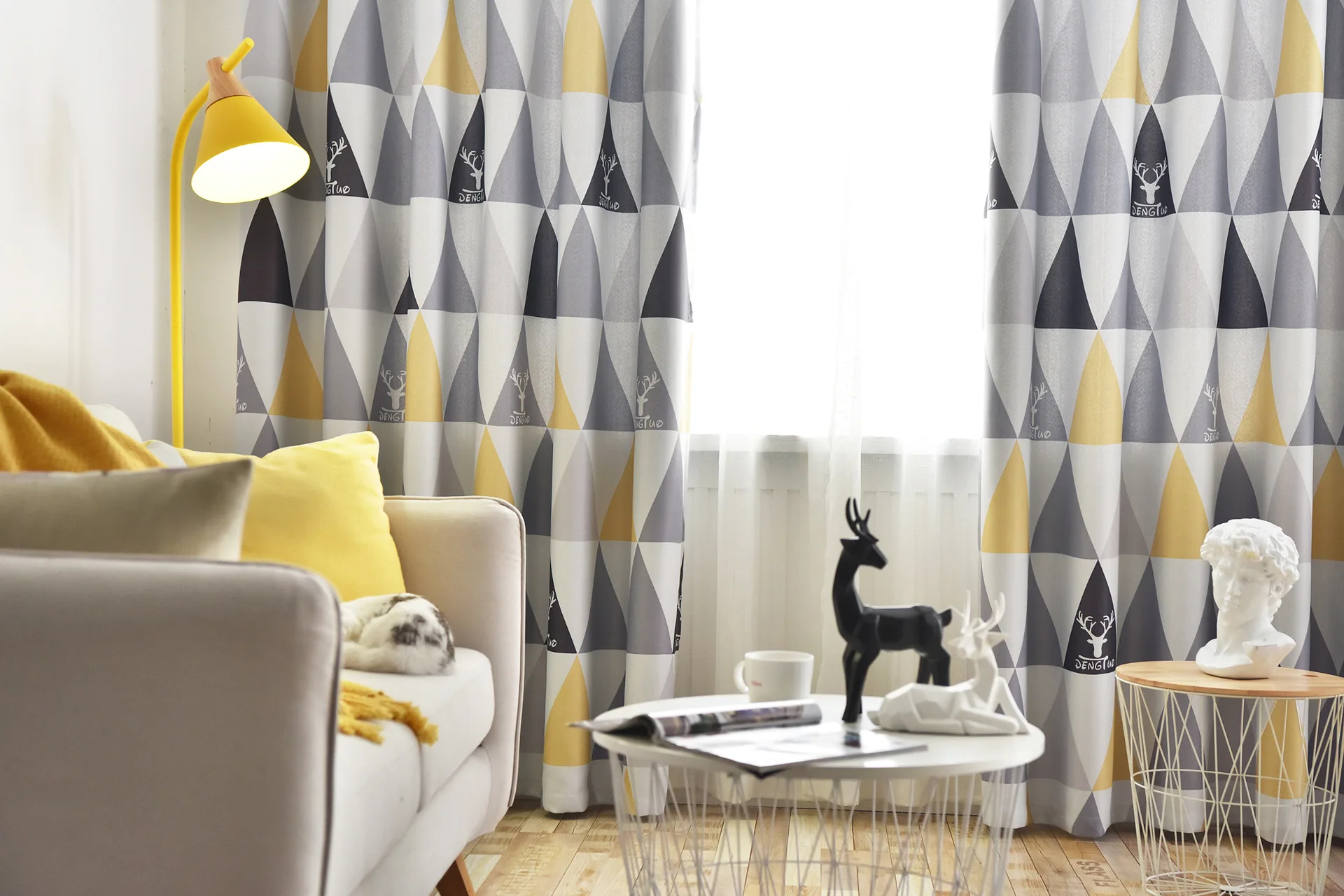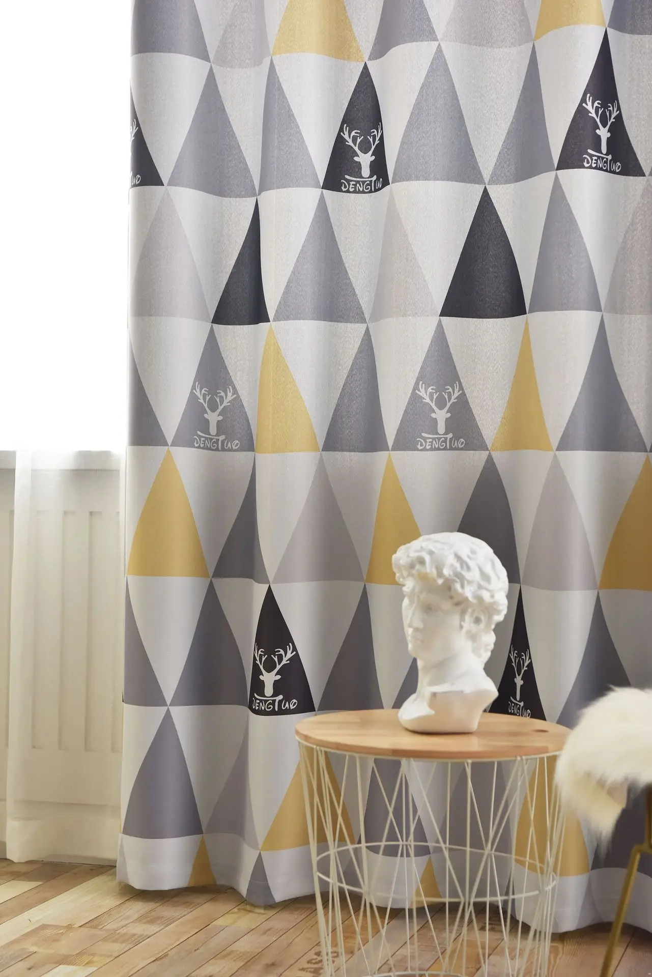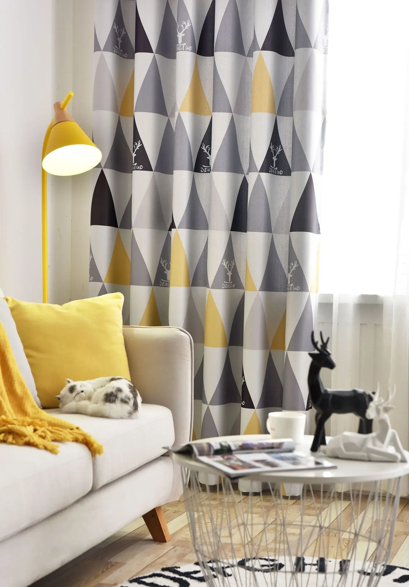 Скандинавские современные затемненные шторы, желтые синие полоски, треугольники, принтованные оконные шторы, занавески для гостиной, детской спальни, Cortinas