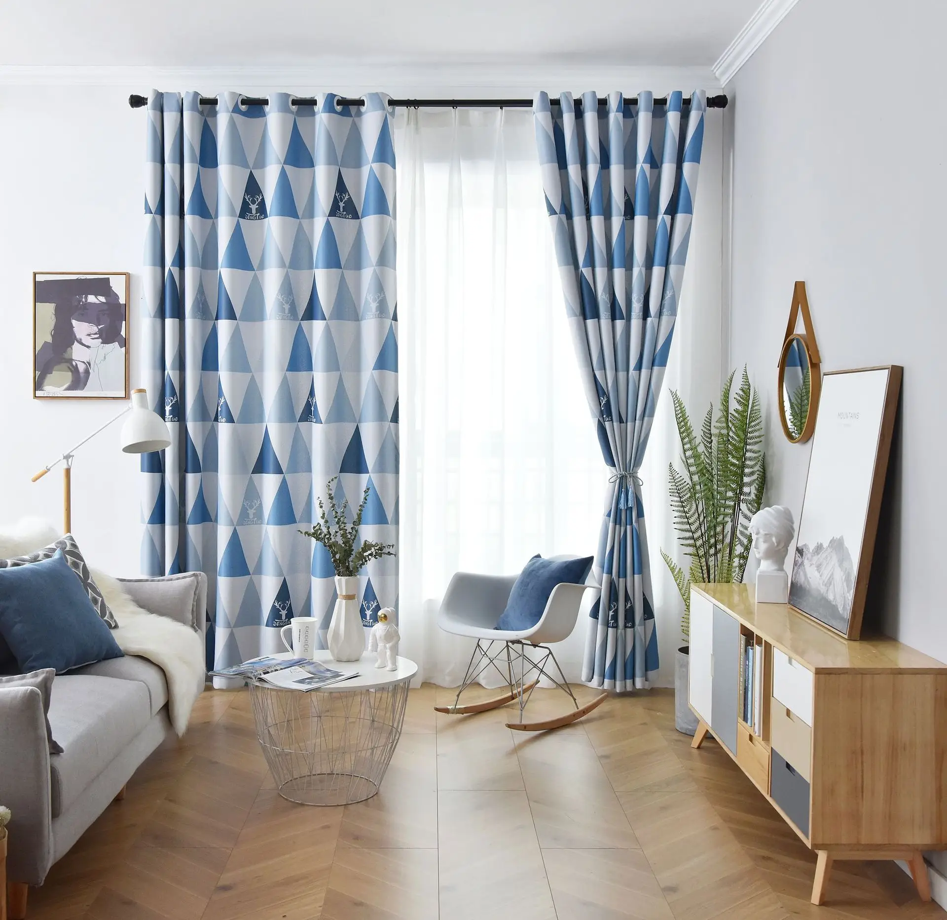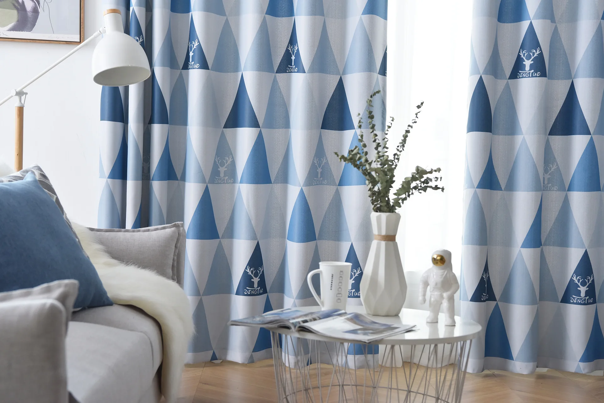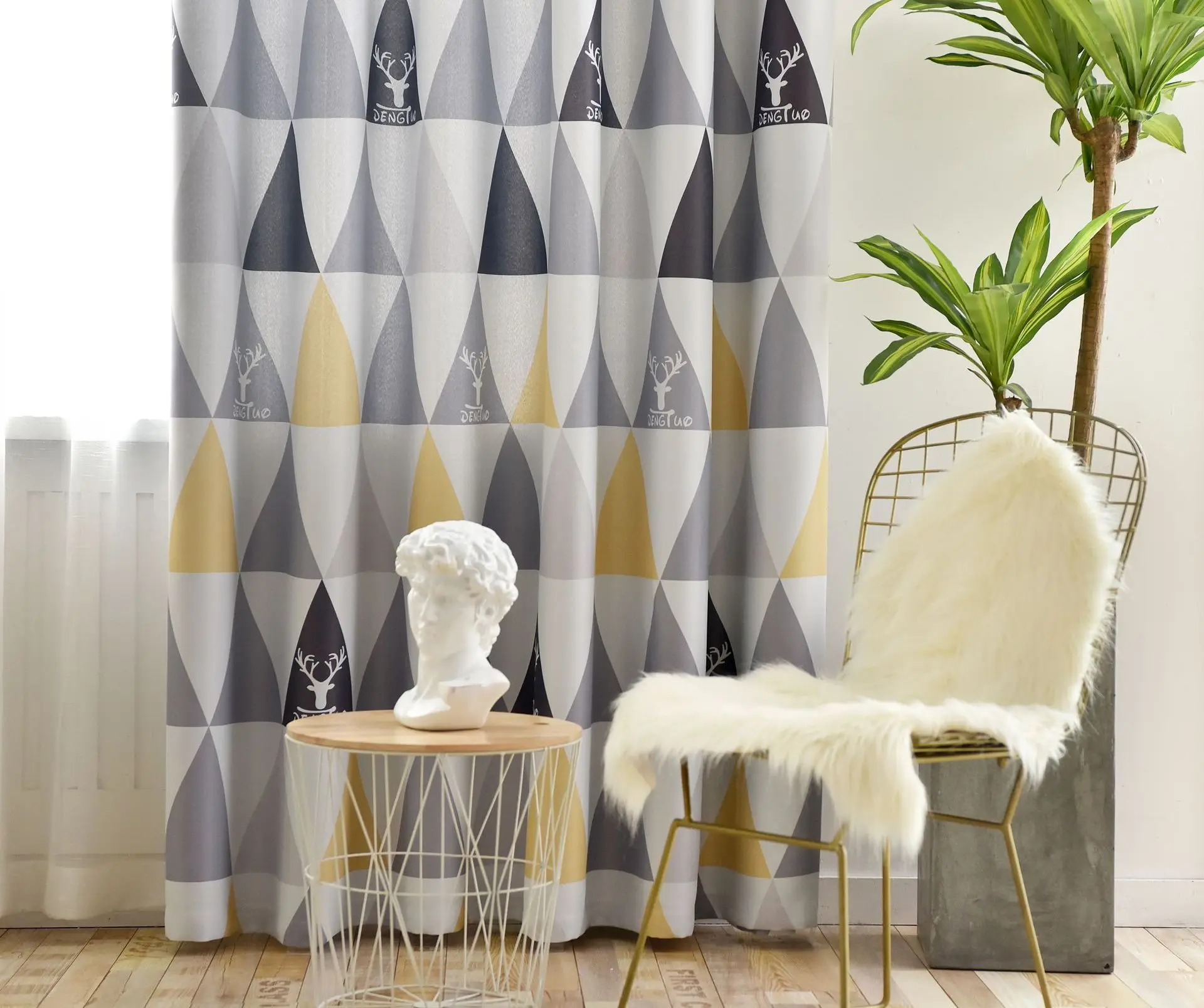 Скандинавские современные затемненные шторы, желтые синие полоски, треугольники, принтованные оконные шторы, занавески для гостиной, детской спальни, Cortinas