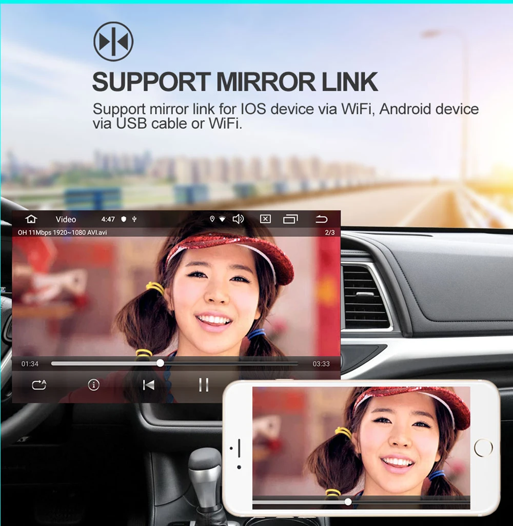 4. Функция зеркальной связи: проигрыватель Android MP5 может зеркальной связью с телефоном Android с помощью usb-кабеля (ссылка на телефон IOS по WIFI), вы можете прикоснуться к экрану MP5, чтобы управлять телефоном на Android