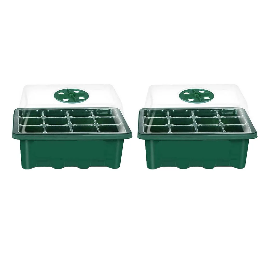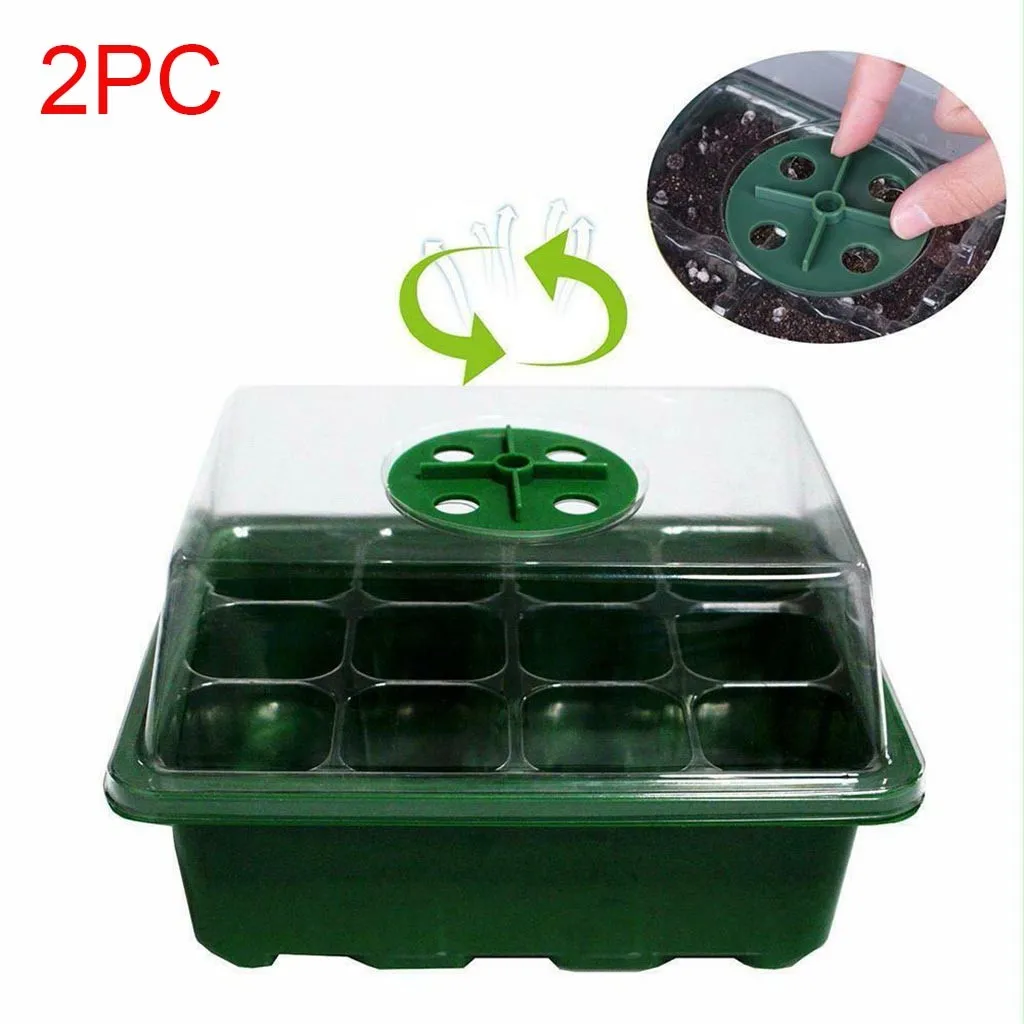 2PCS 12 Hole Plant Seed Box Nursery Seedling Starter Garden Yard Tray Plants Propagation Nursery Box with Lid Seedling Tray Pot